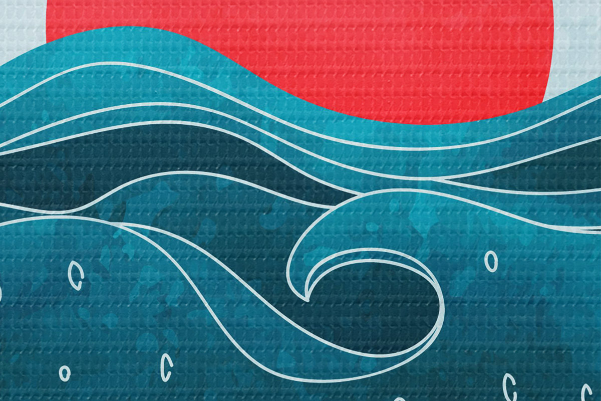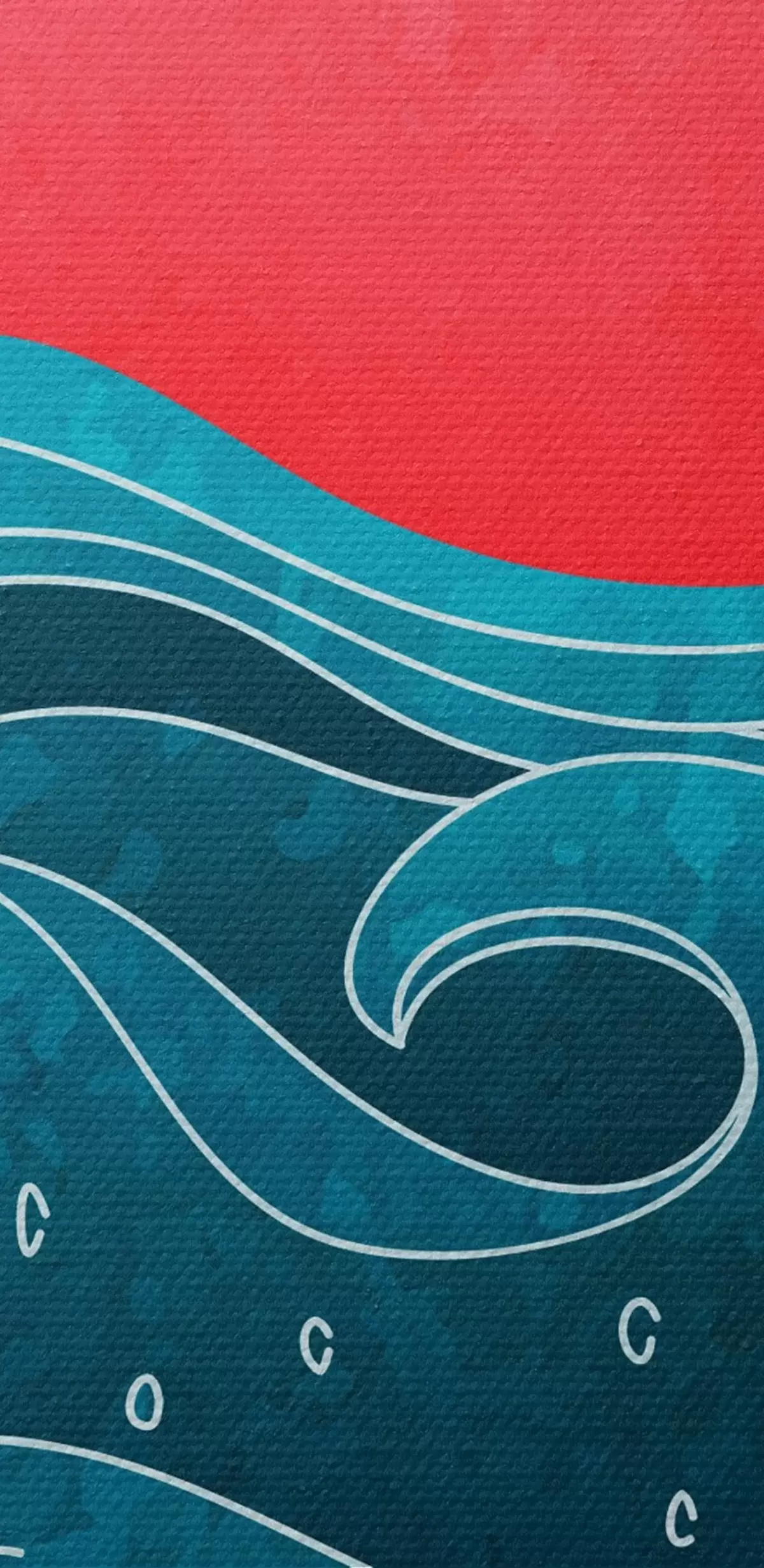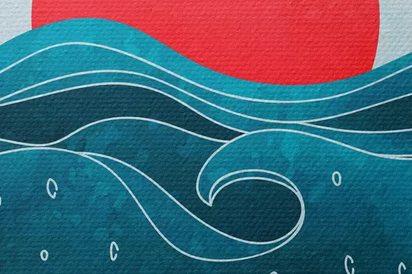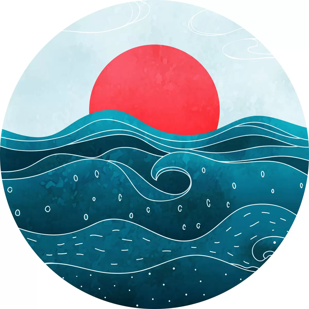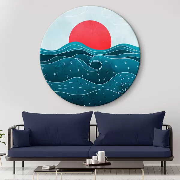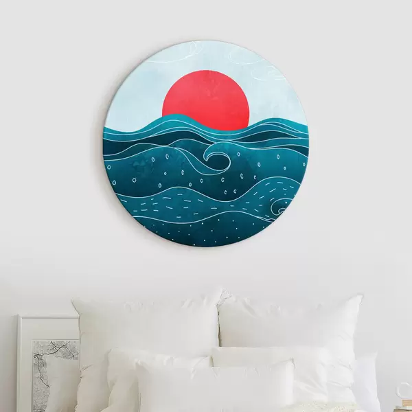 Pilt Vesi koos lainete ja punase päikesega Nr r37640