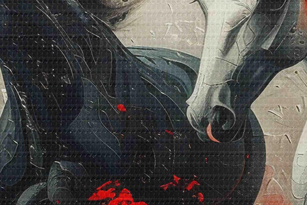 Selle lõuendi peenike niidipunus meenutab professionaalse kunstniku lõuendi pinda.