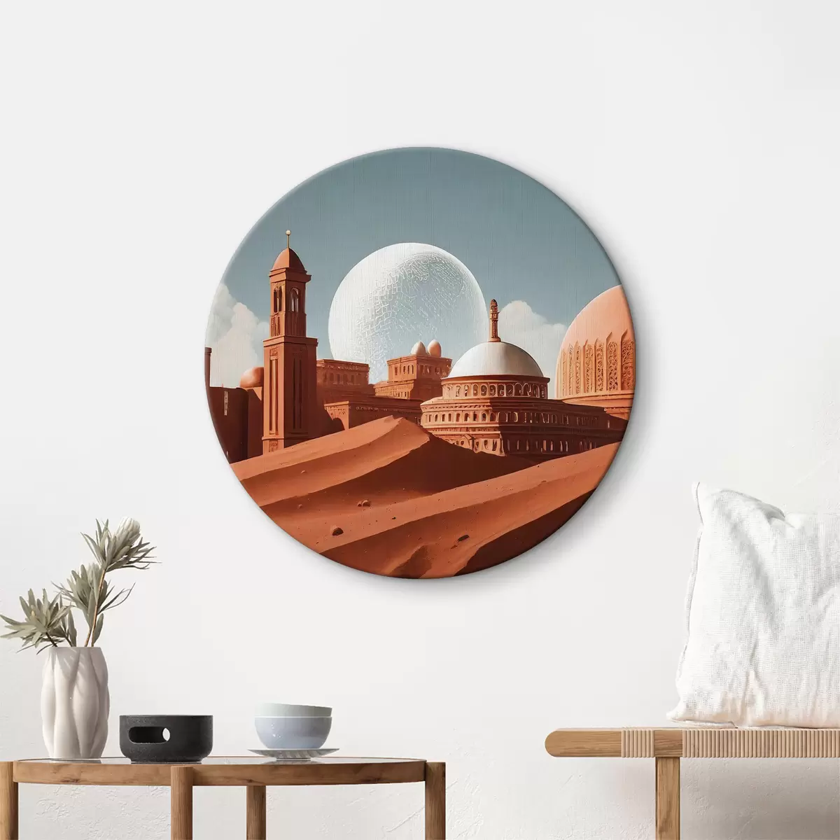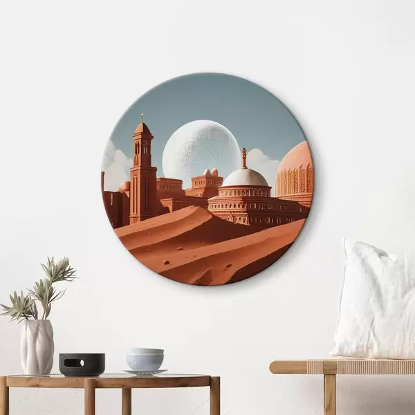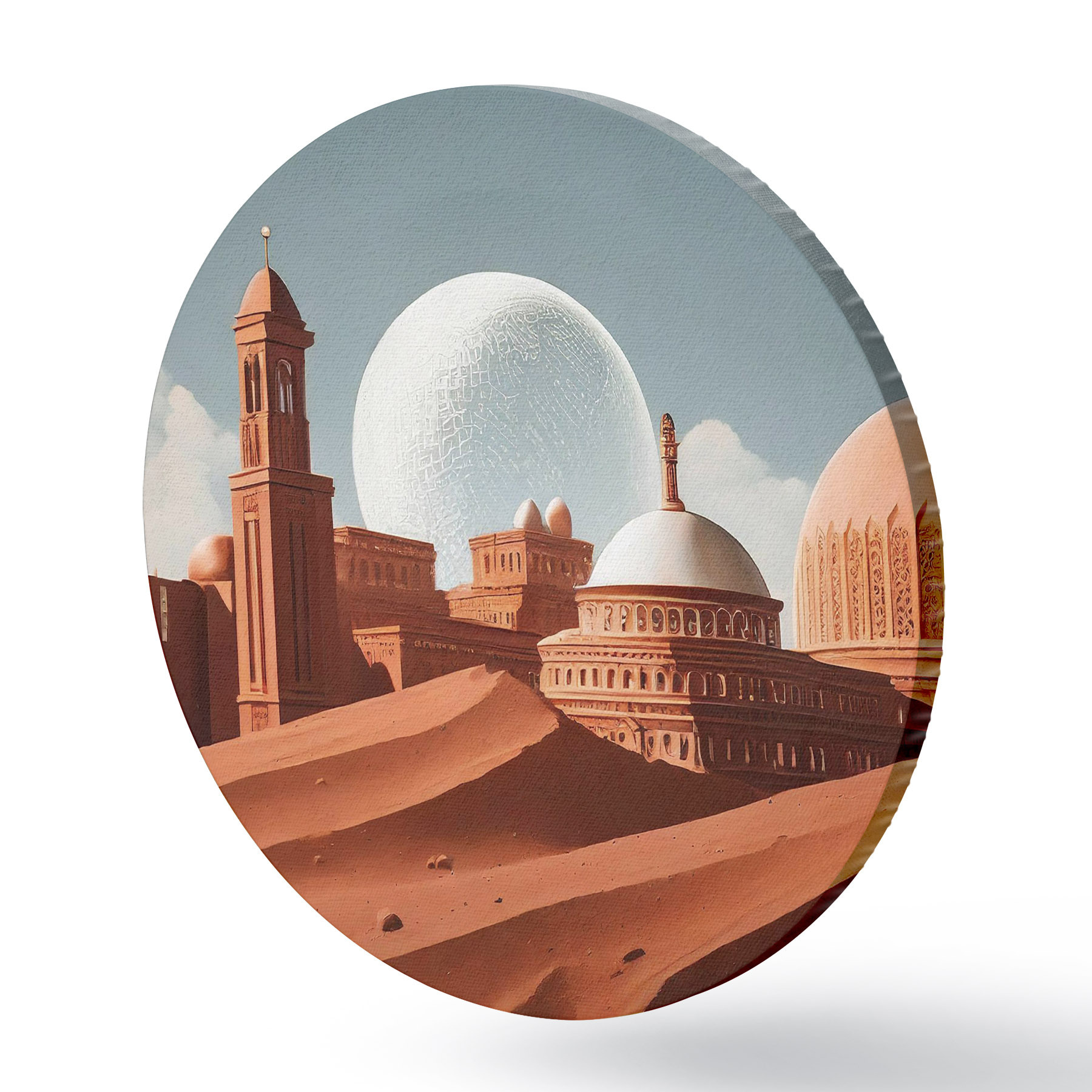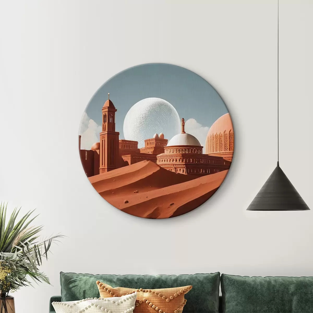 Pilt Kõrbemaastik koos hoonete ja suure valge palliga Nr r37814