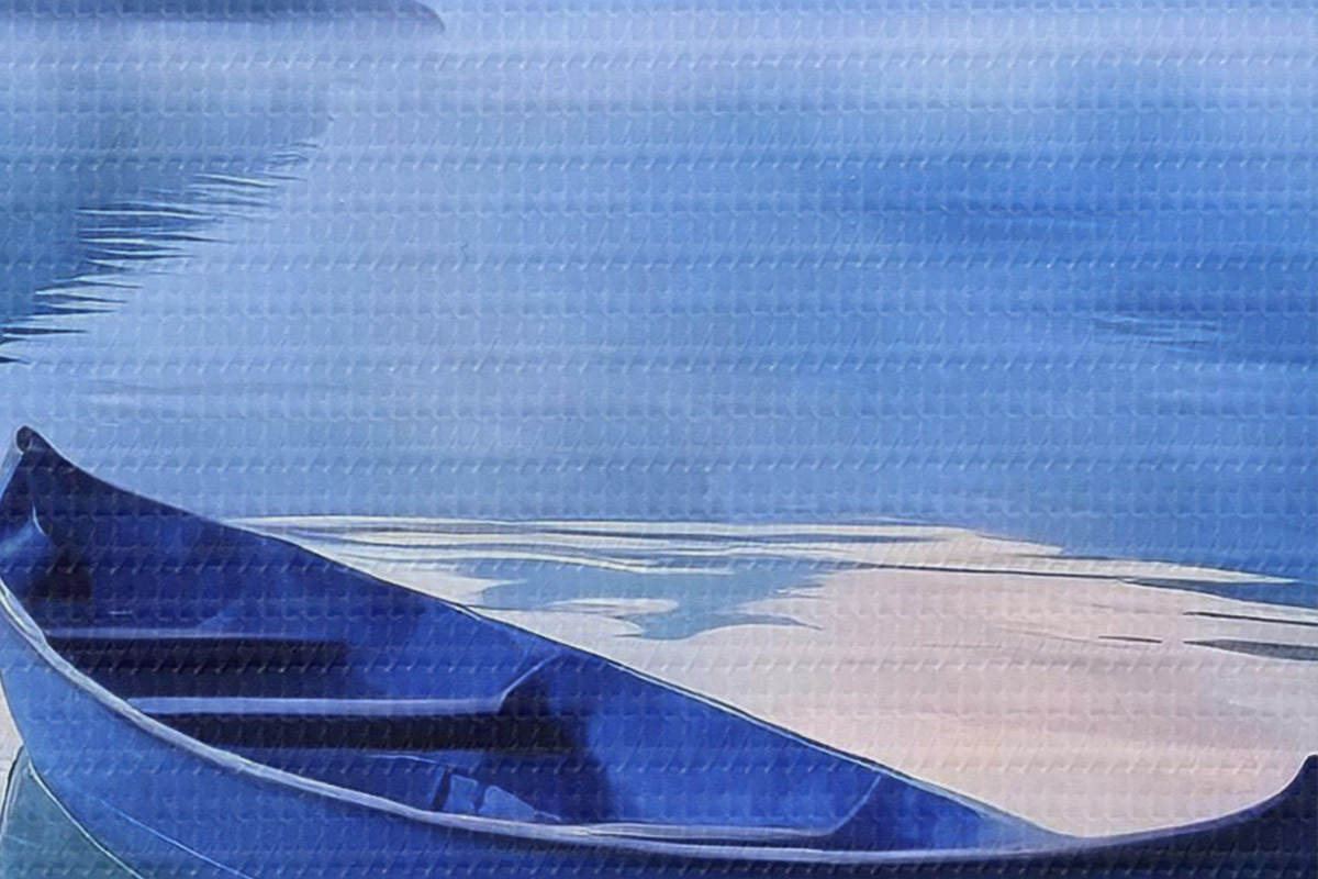 Selle lõuendi peenike niidipunus meenutab professionaalse kunstniku lõuendi pinda.