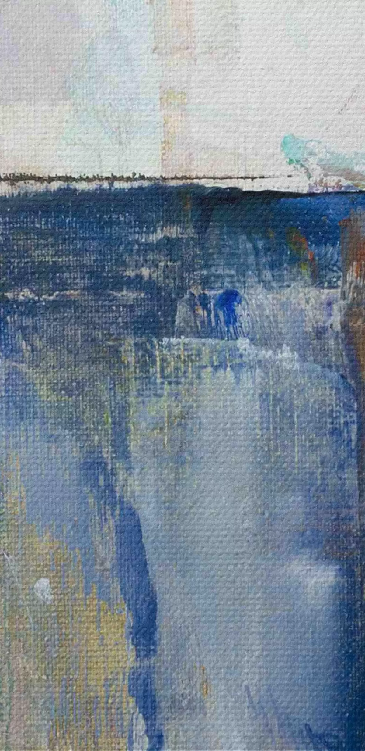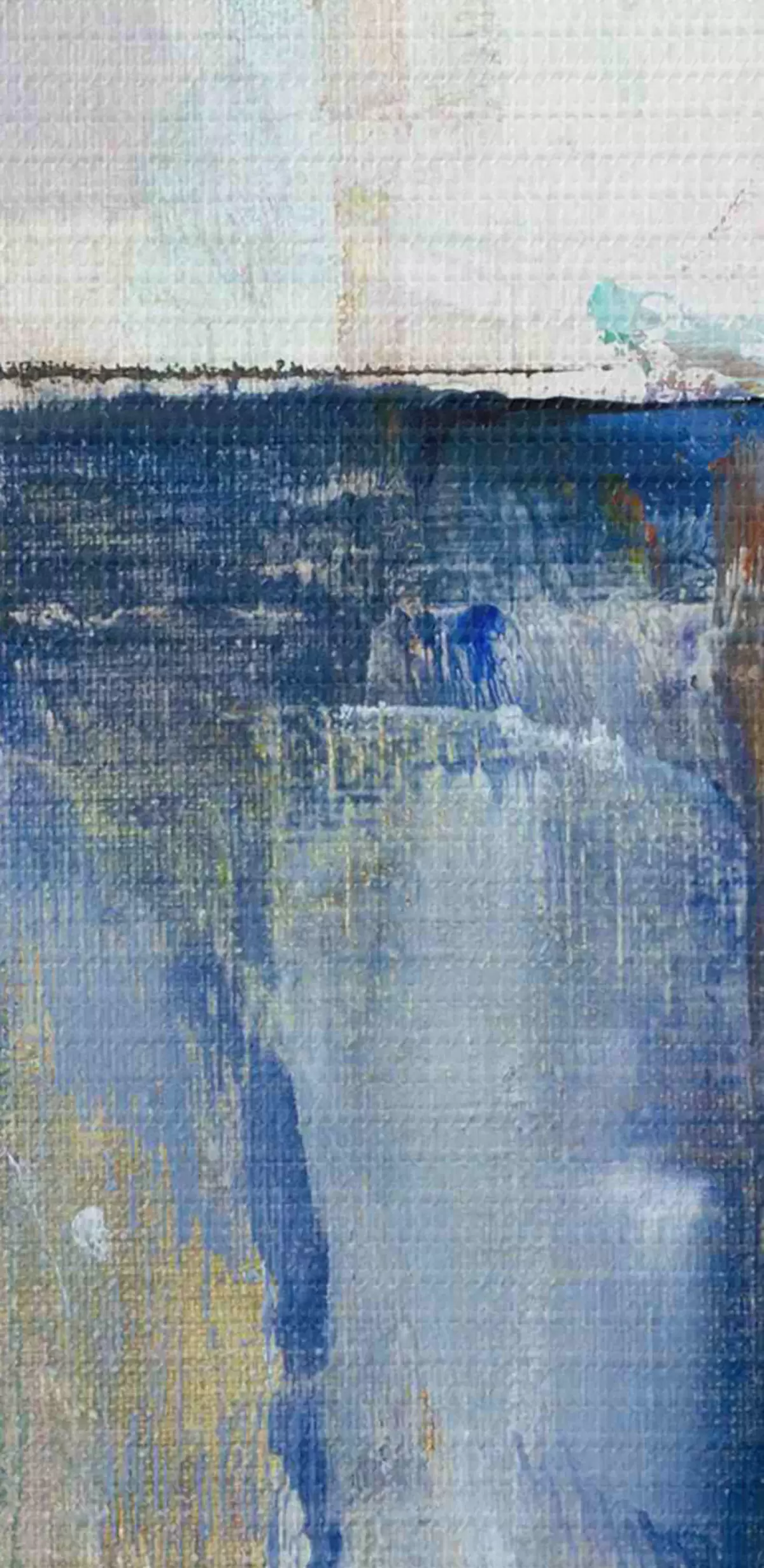 Selle lõuendi peenike niidipunus meenutab professionaalse kunstniku lõuendi pinda.