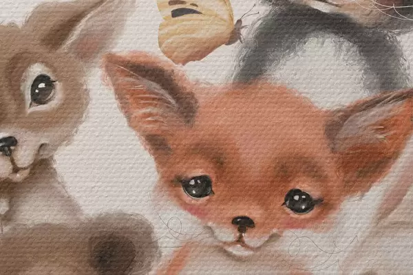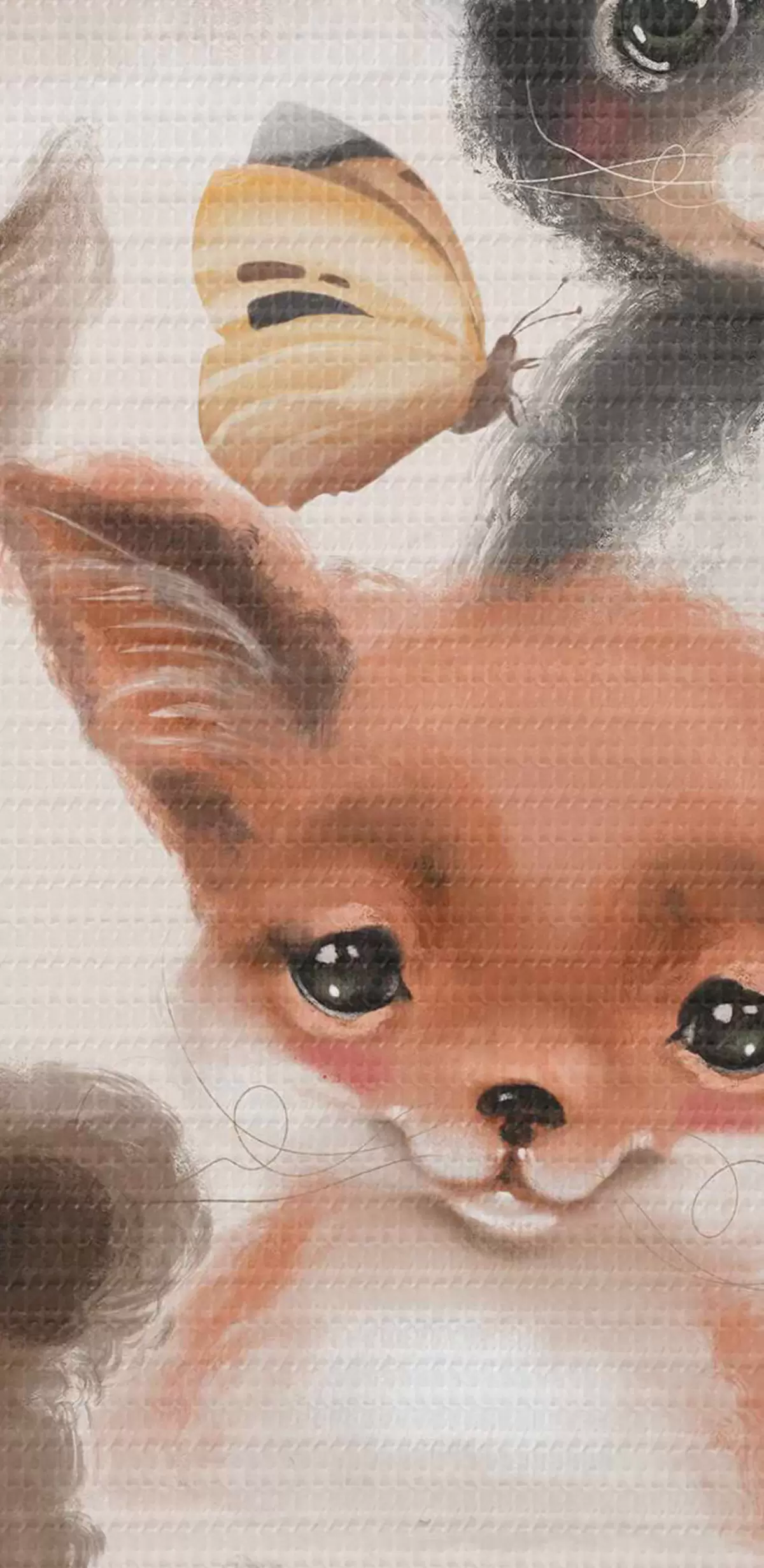 Selle lõuendi peenike niidipunus meenutab professionaalse kunstniku lõuendi pinda.