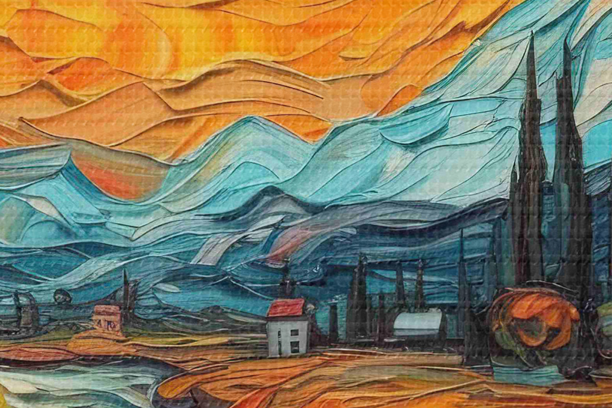 Selle lõuendi peenike niidipunus meenutab professionaalse kunstniku lõuendi pinda.