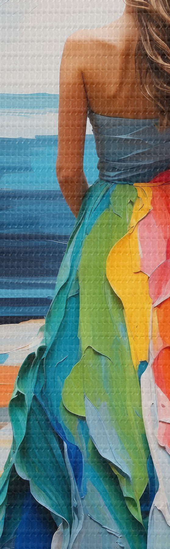 Selle lõuendi peenike niidipunus meenutab professionaalse kunstniku lõuendi pinda.