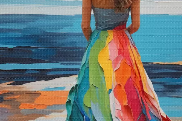 Selle lõuendi peenike niidipunus meenutab professionaalse kunstniku lõuendi pinda.