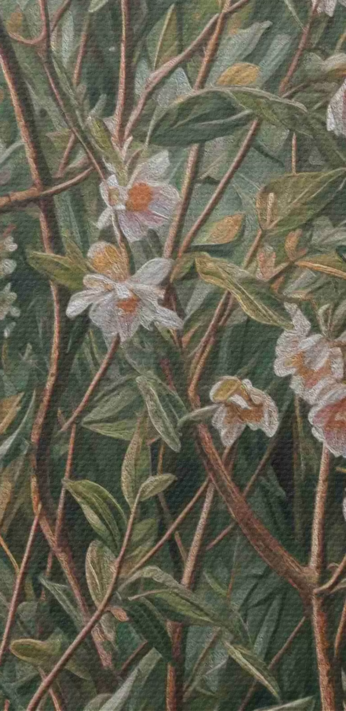 Selle lõuendi peenike niidipunus meenutab professionaalse kunstniku lõuendi pinda.
