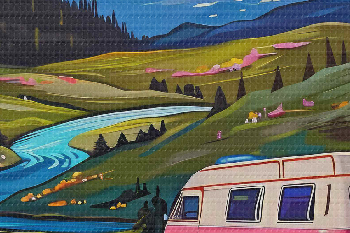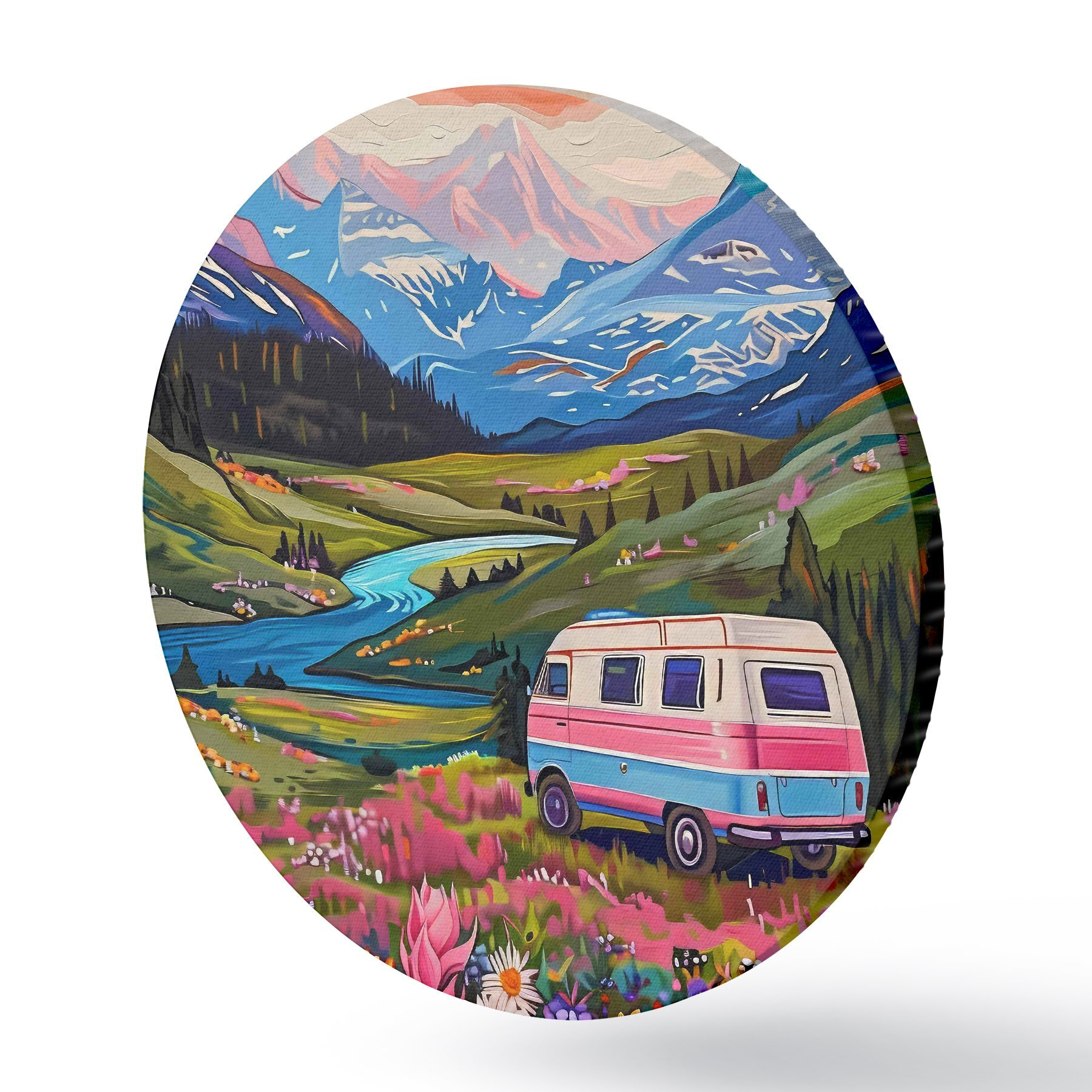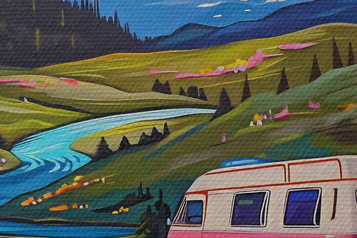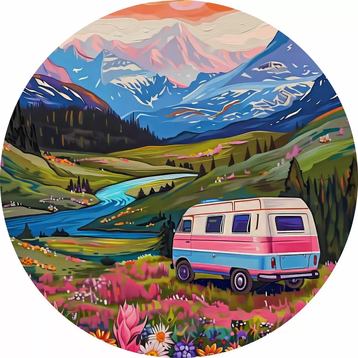 Pilt Läbi lillede ja mägedega oru sõitev kaubik Nr r38259
