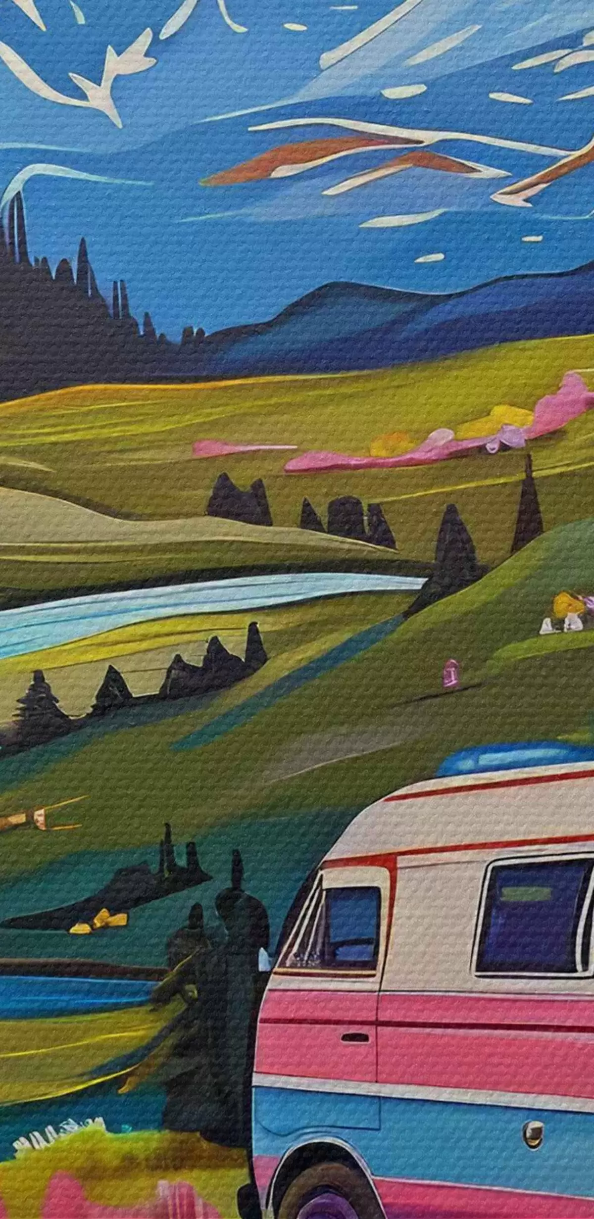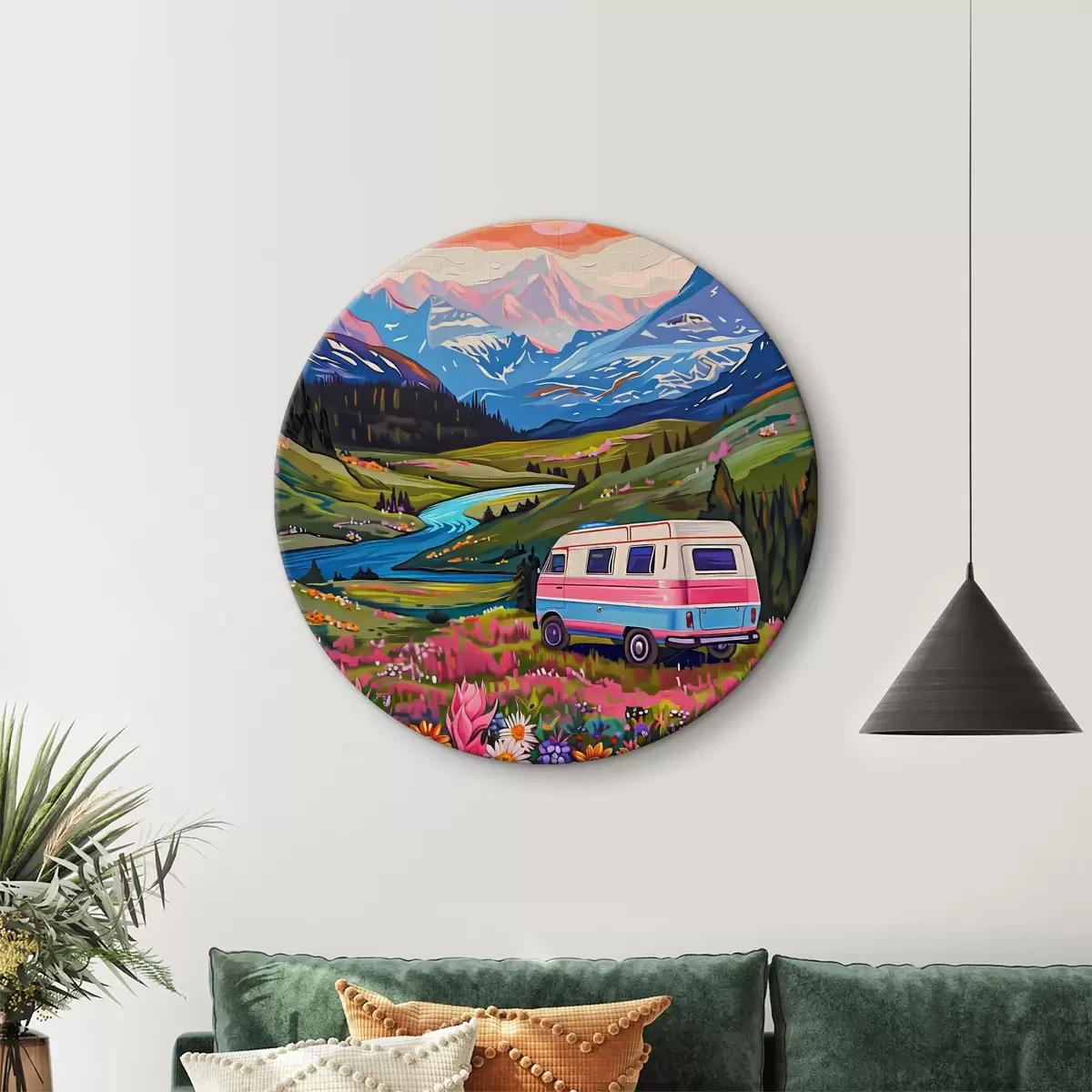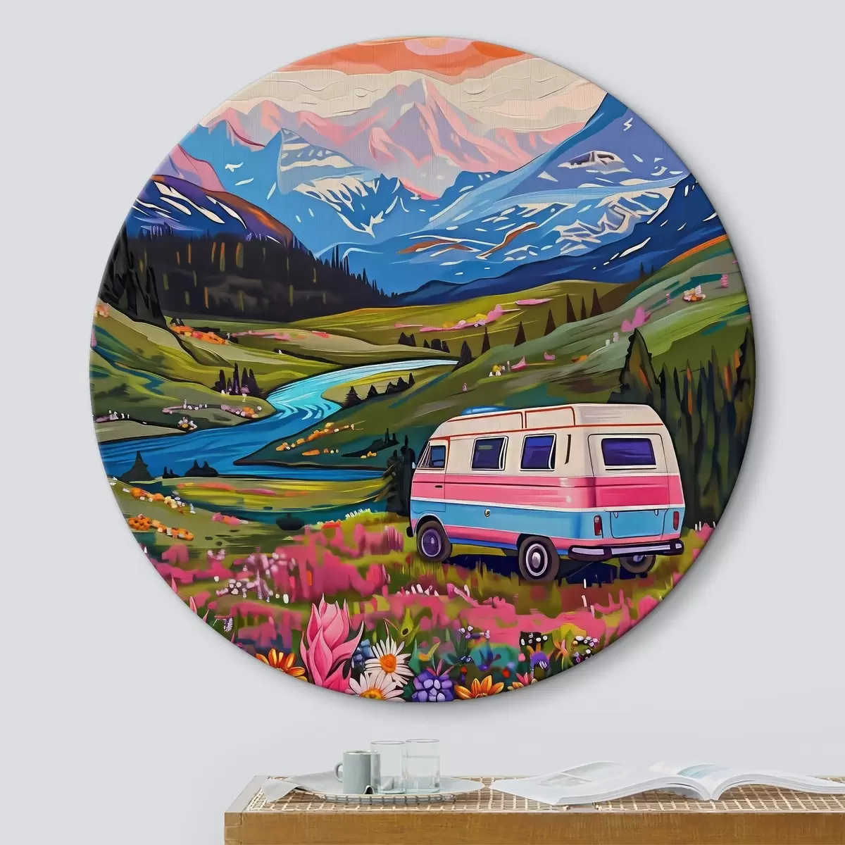 Pilt Läbi lillede ja mägedega oru sõitev kaubik Nr r38259