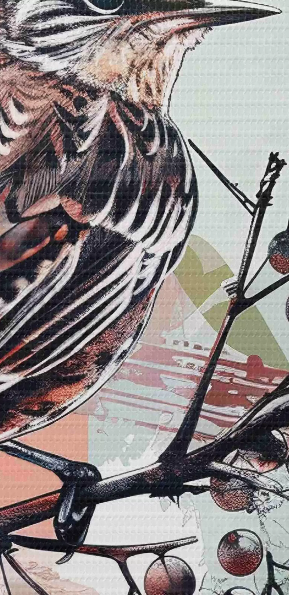 Selle lõuendi peenike niidipunus meenutab professionaalse kunstniku lõuendi pinda.