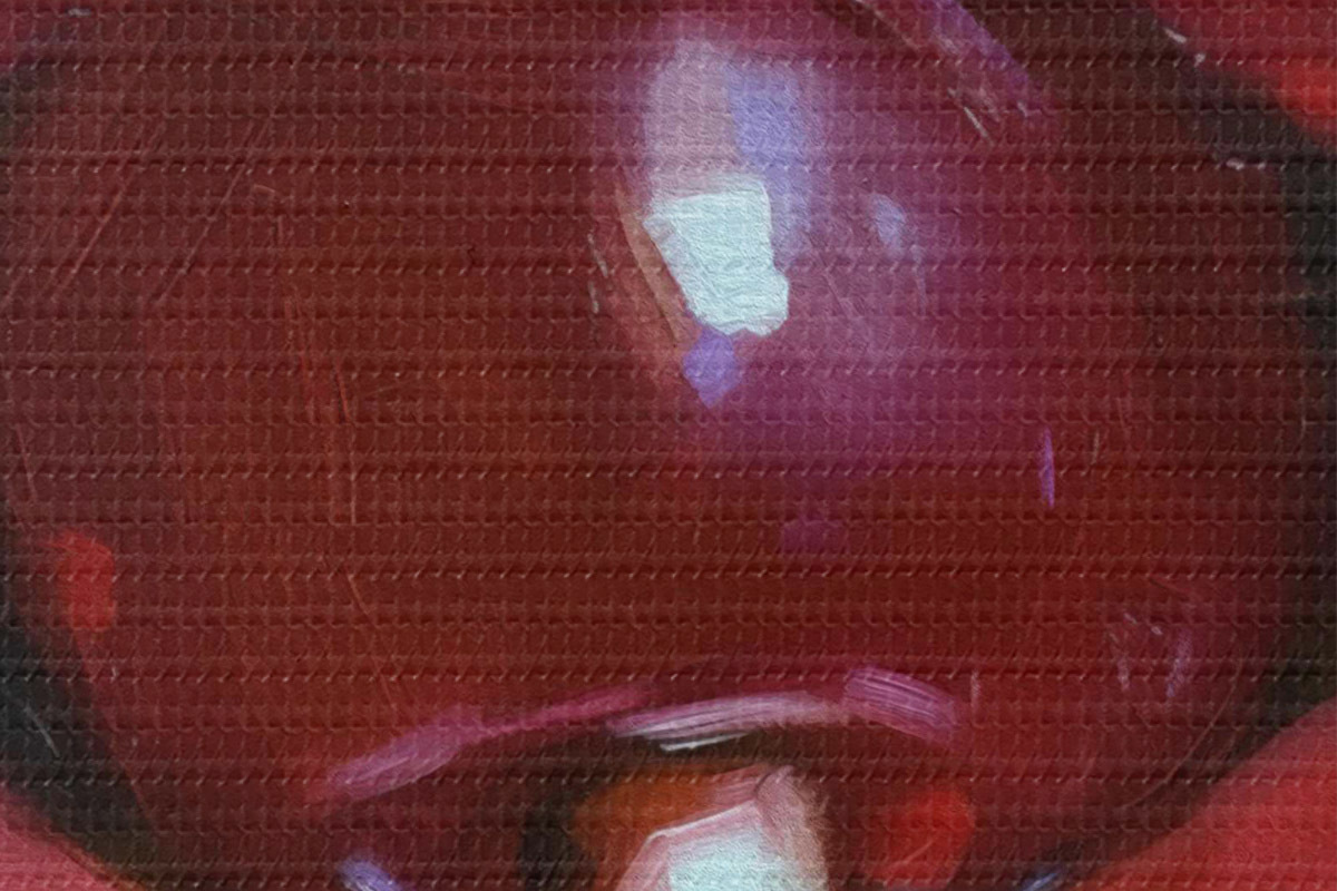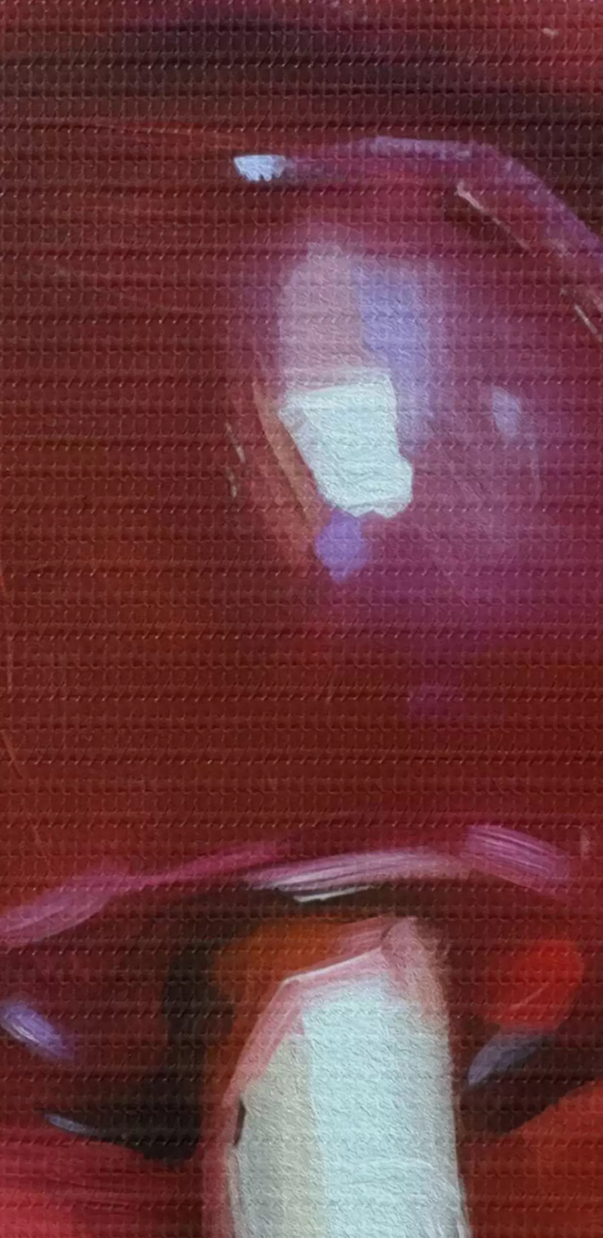 Selle lõuendi peenike niidipunus meenutab professionaalse kunstniku lõuendi pinda.
