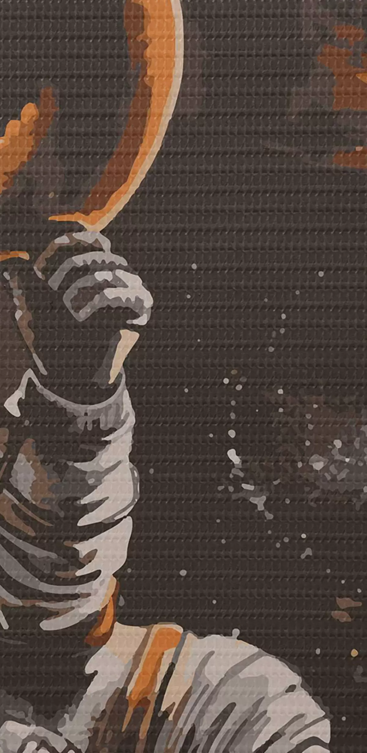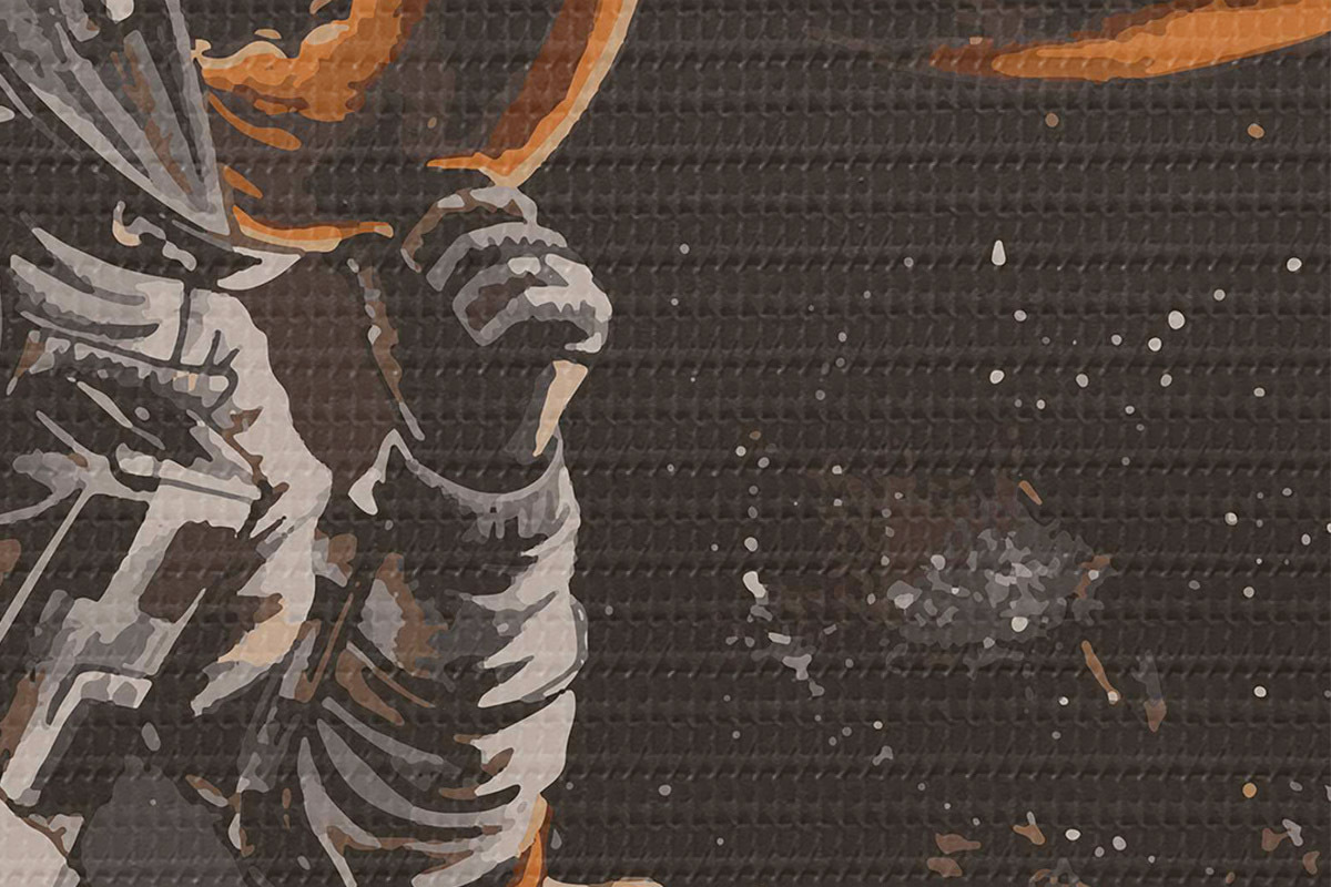 Selle lõuendi peenike niidipunus meenutab professionaalse kunstniku lõuendi pinda.