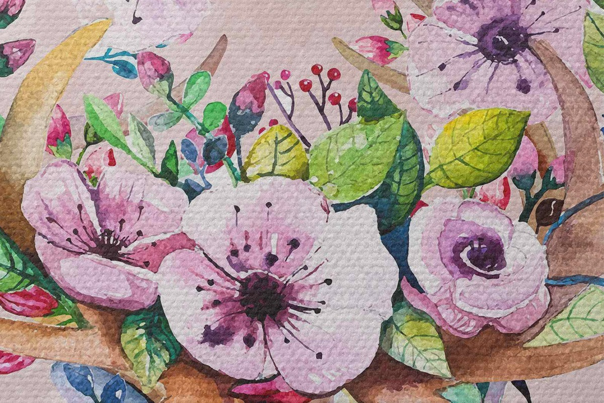 Pilt Akvarellmaal hirve lilledega sarvede peal Nr r38331