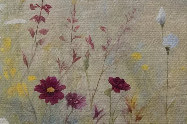 Pilt Värviline metsalilledega heinamaa, mille taustal on ähmane mets Nr r38368