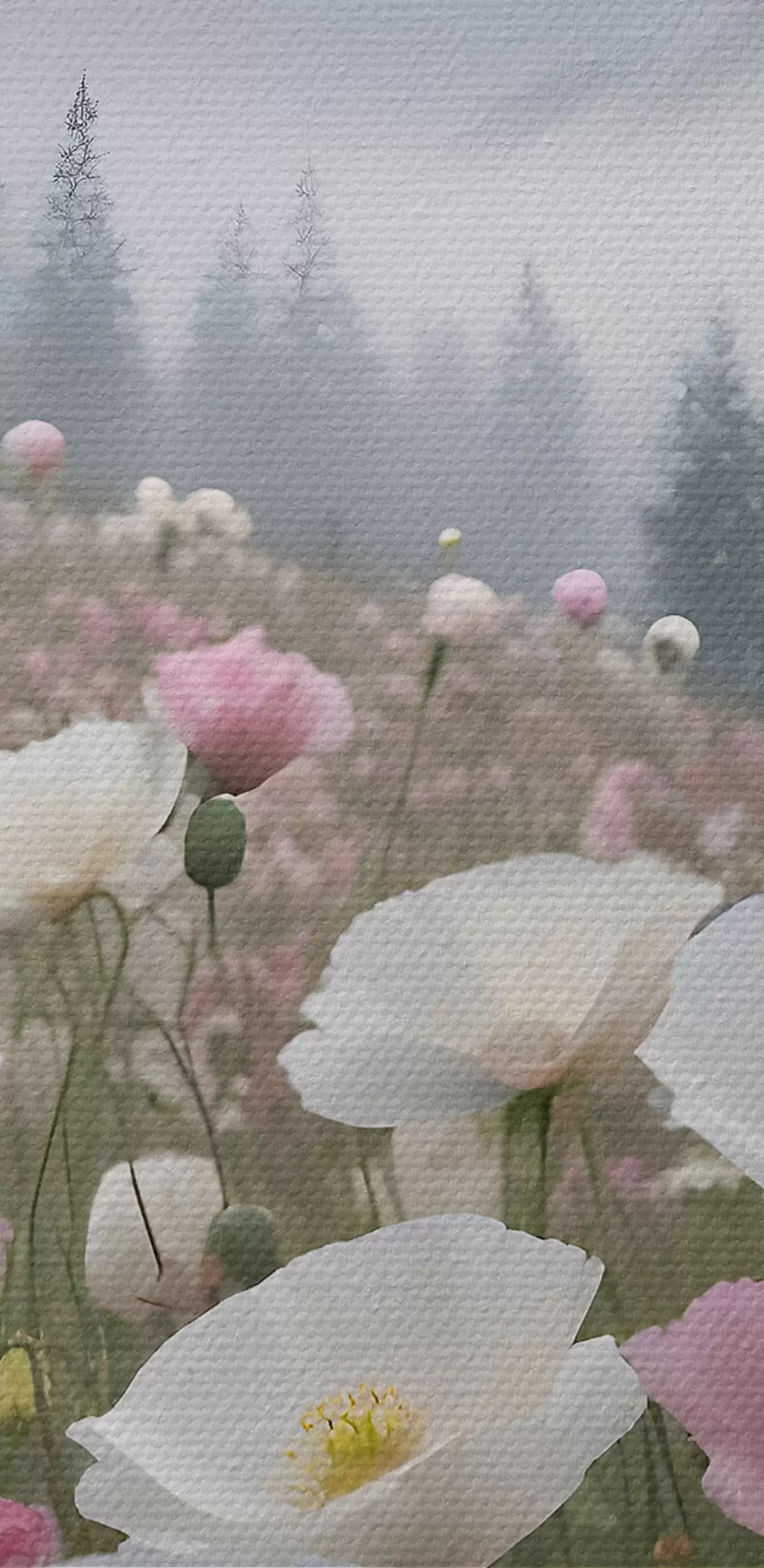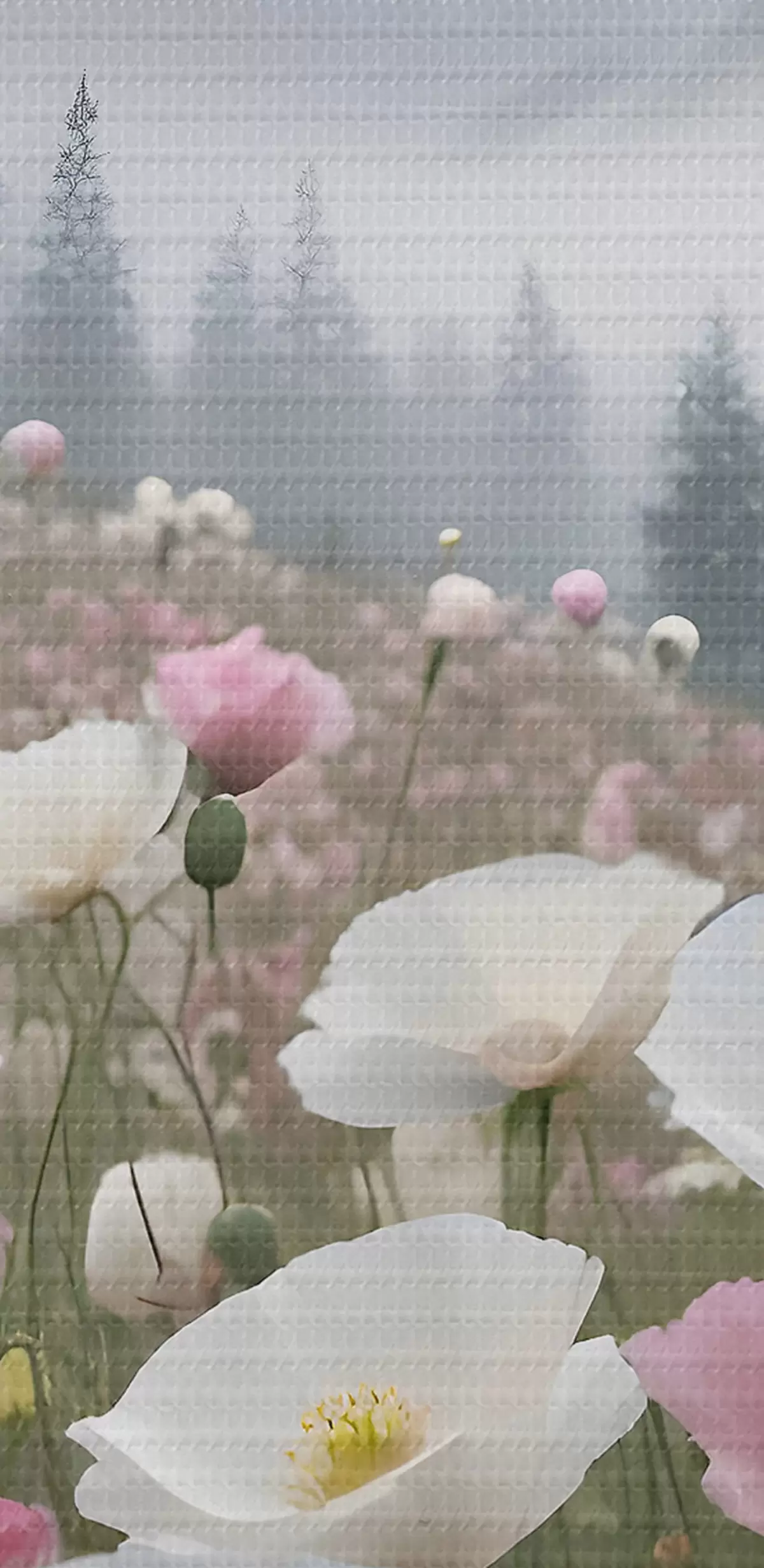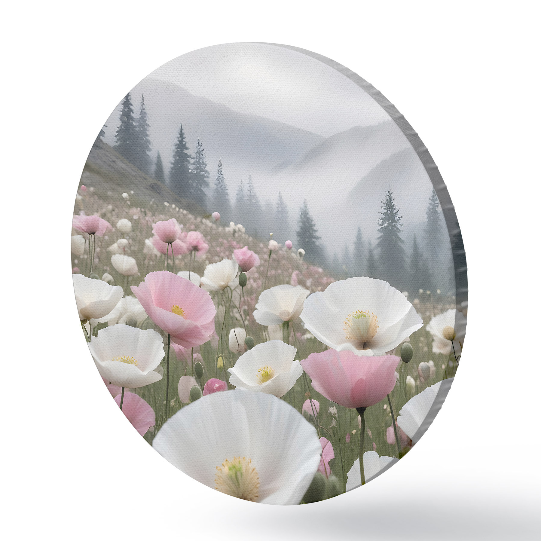 Pilt Taamal mägimaastikul roosade ja valgete moonide põld Nr r38369
