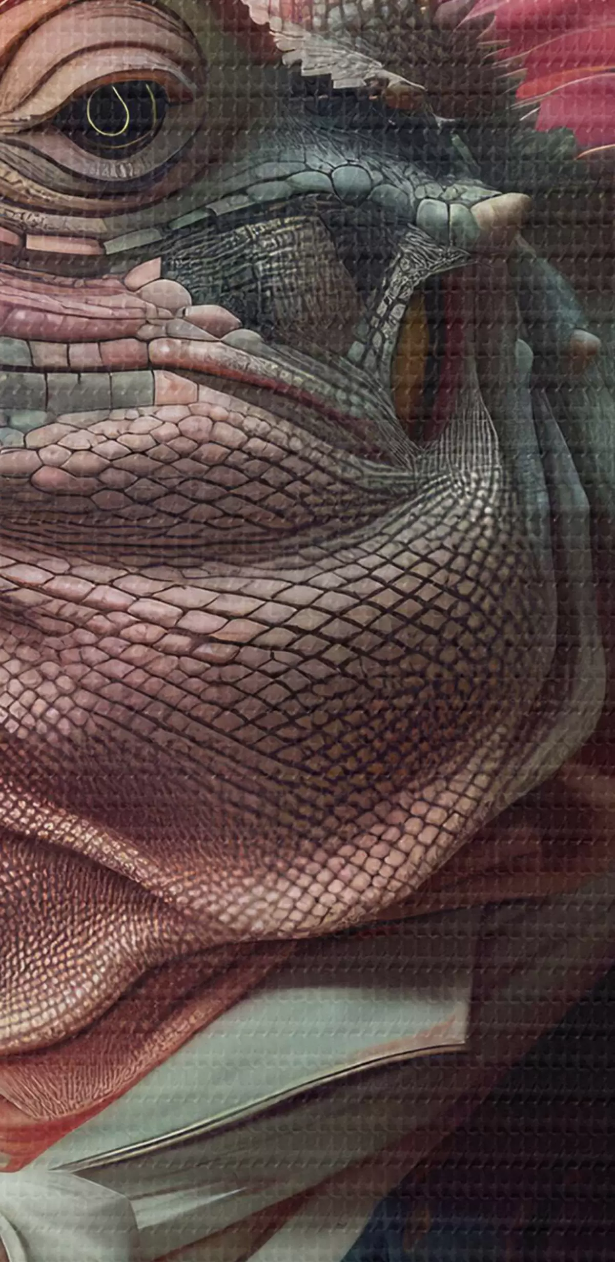 Selle lõuendi peenike niidipunus meenutab professionaalse kunstniku lõuendi pinda.
