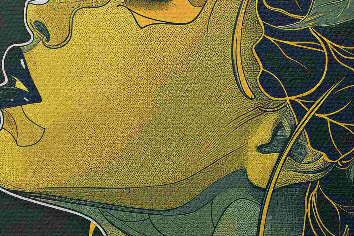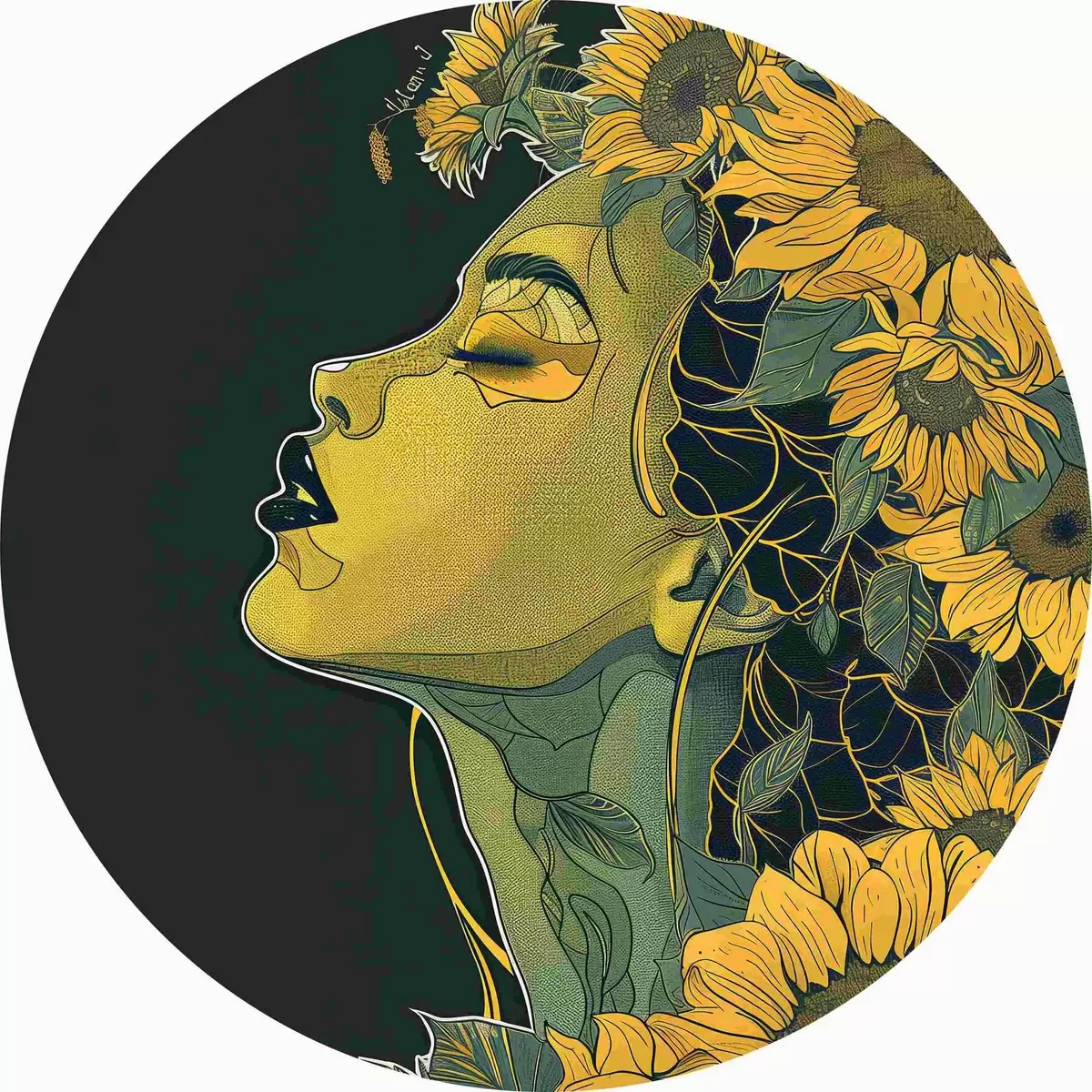 Pilt Naine suletud silmadega ja lilledega juustes Nr r38376