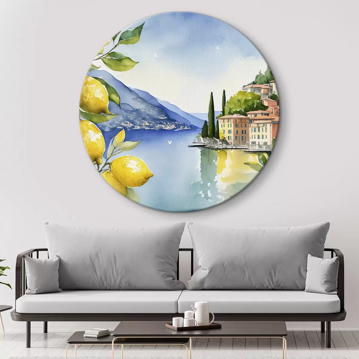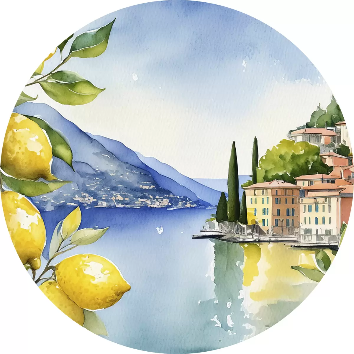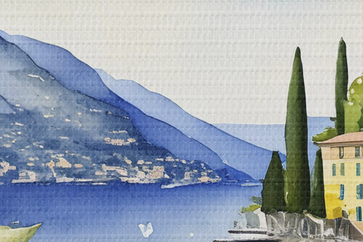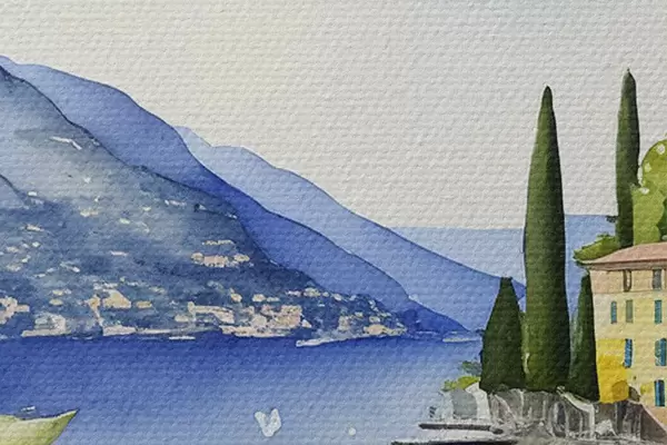 Pilt Itaalia järv, suvi, akvarell, loodusmaastik, sidrunid, linnaarhitektuur Nr r38394