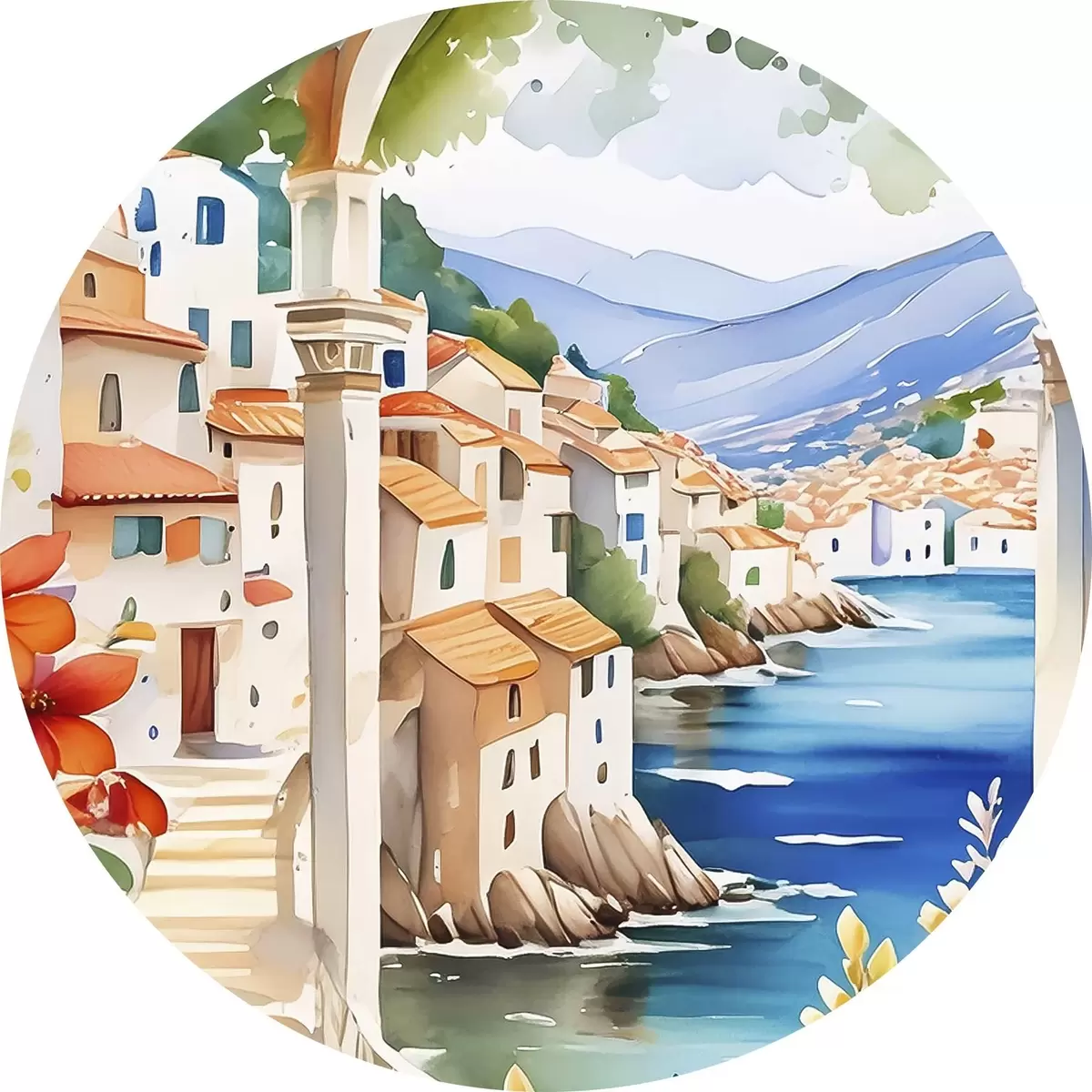Pilt Pilt linnast koos jõe ja lilledega Nr r38406