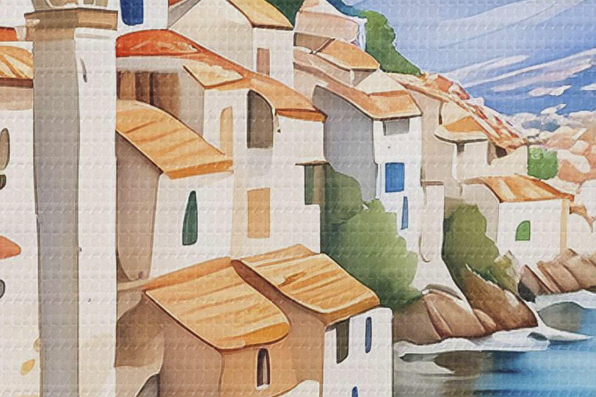 Selle lõuendi peenike niidipunus meenutab professionaalse kunstniku lõuendi pinda.
