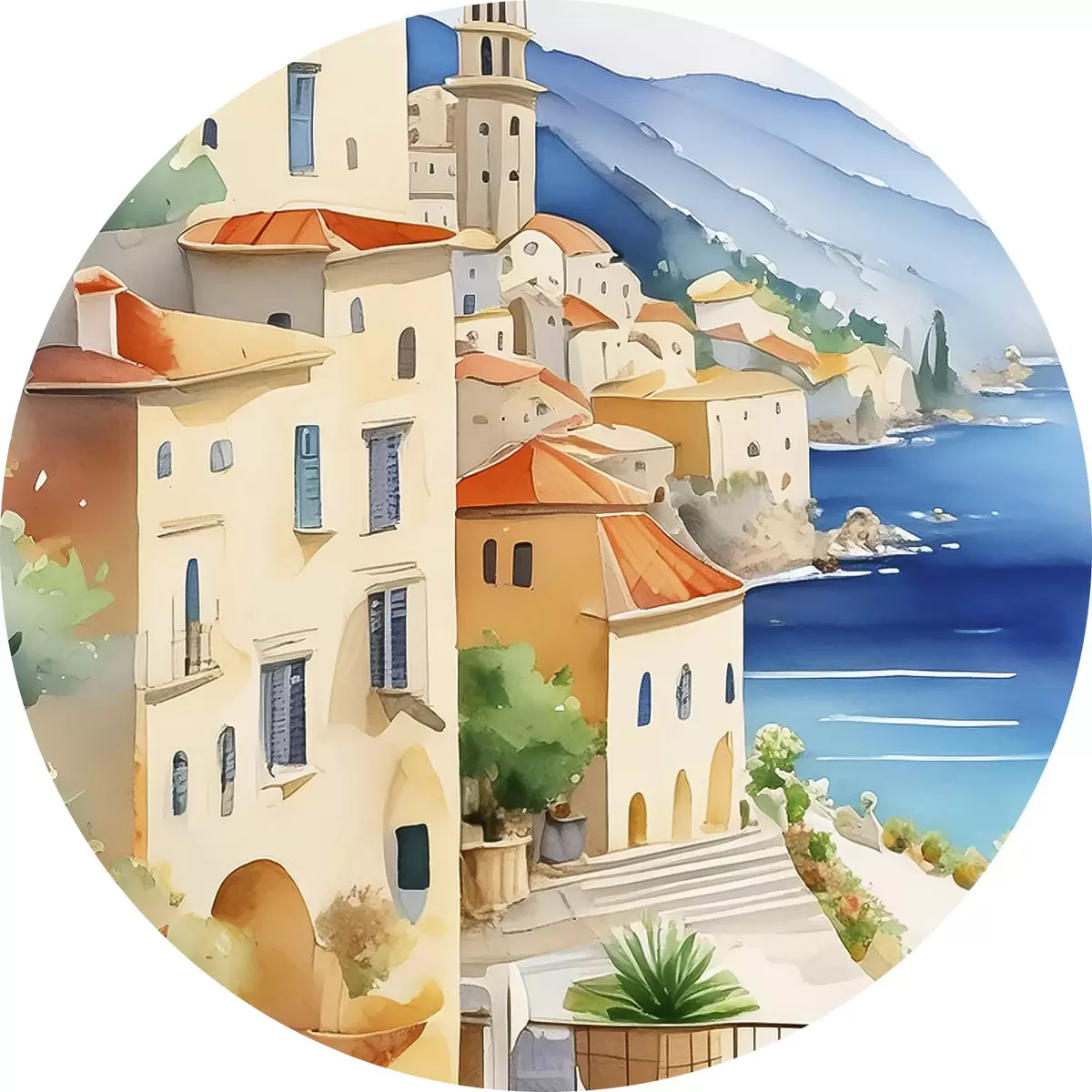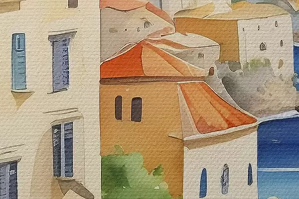 Pilt Akvarell, millel on kujutatud linn mere kohal asuval künkal Nr r38409