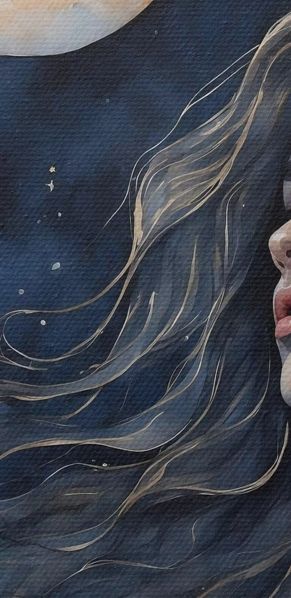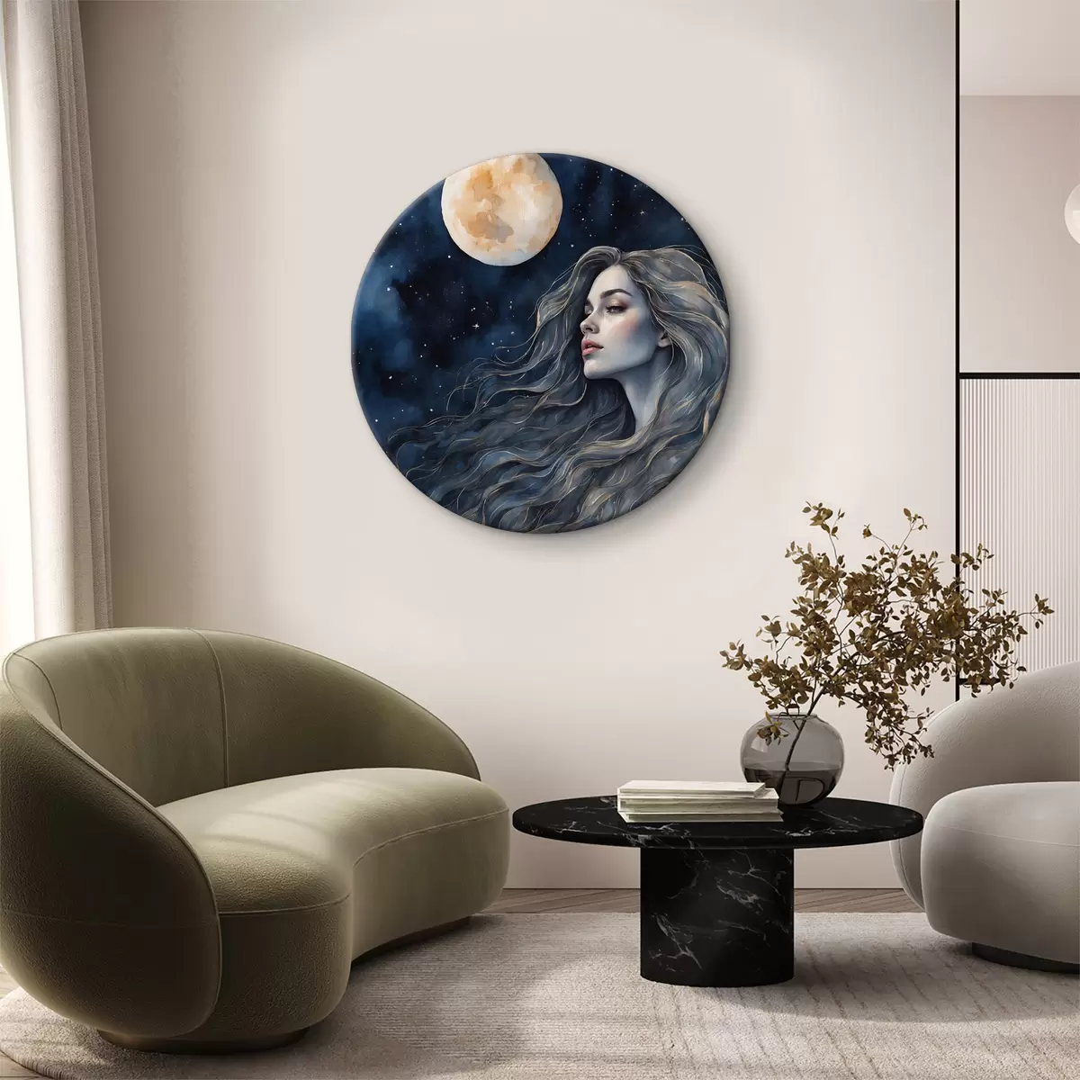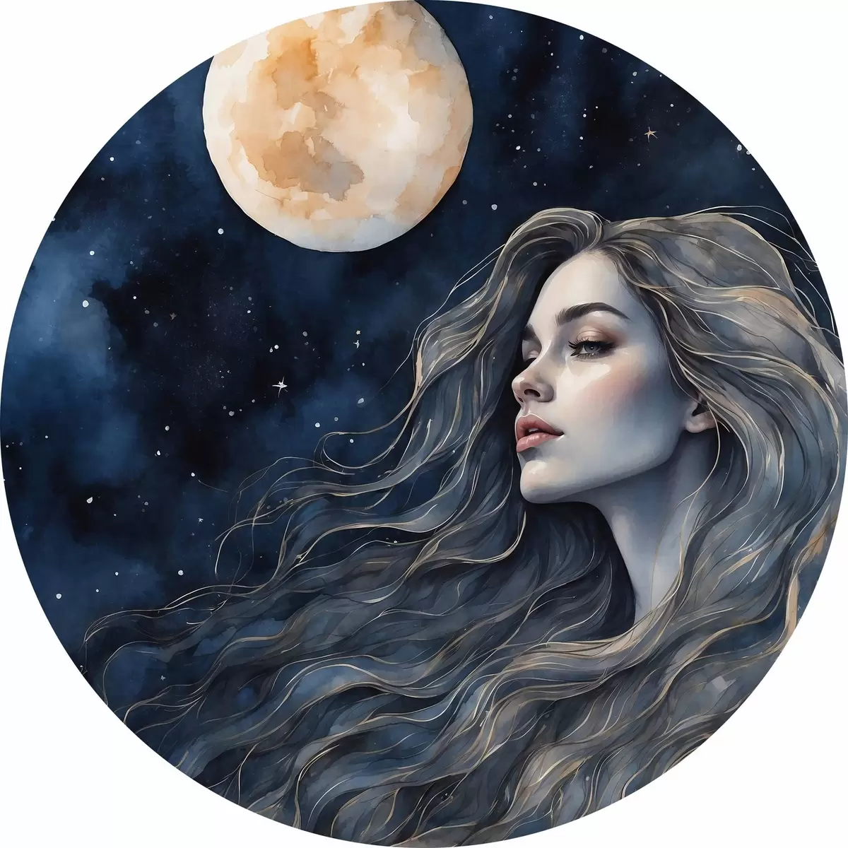 Pilt Pikkade juustega naine ja kuu Nr r38438