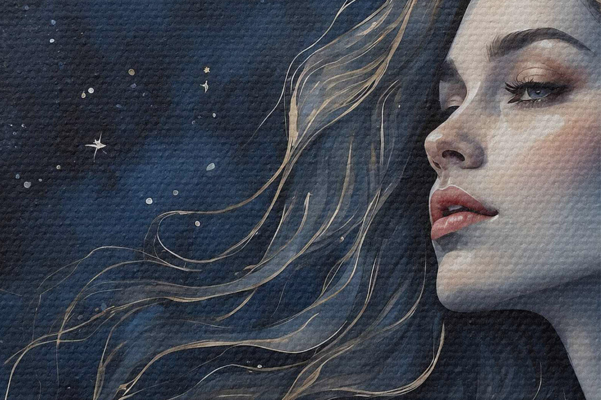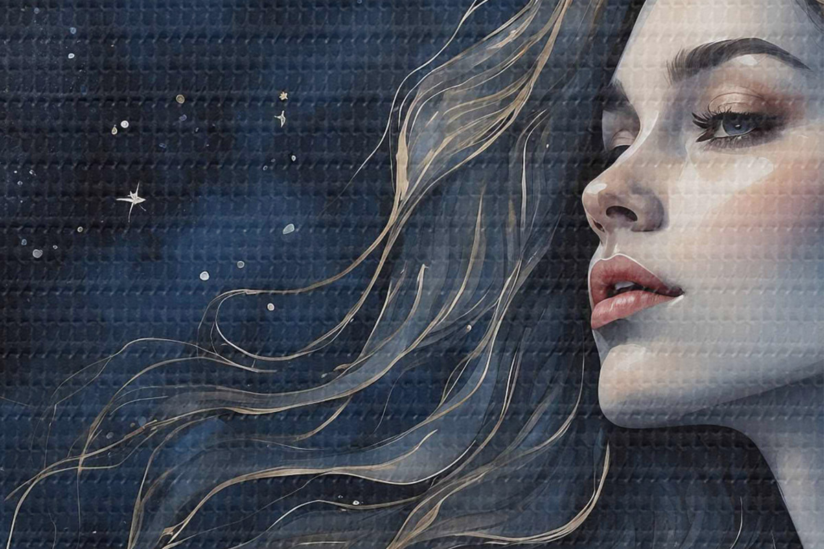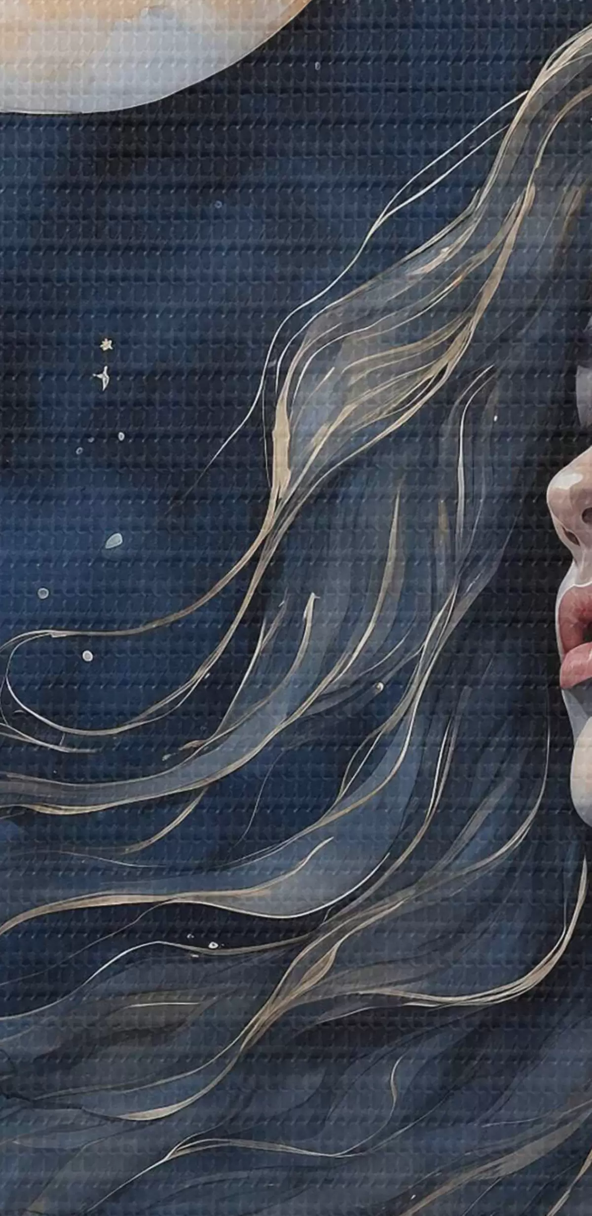Pilt Pikkade juustega naine ja kuu Nr r38438