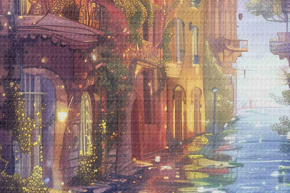 Selle lõuendi peenike niidipunus meenutab professionaalse kunstniku lõuendi pinda.