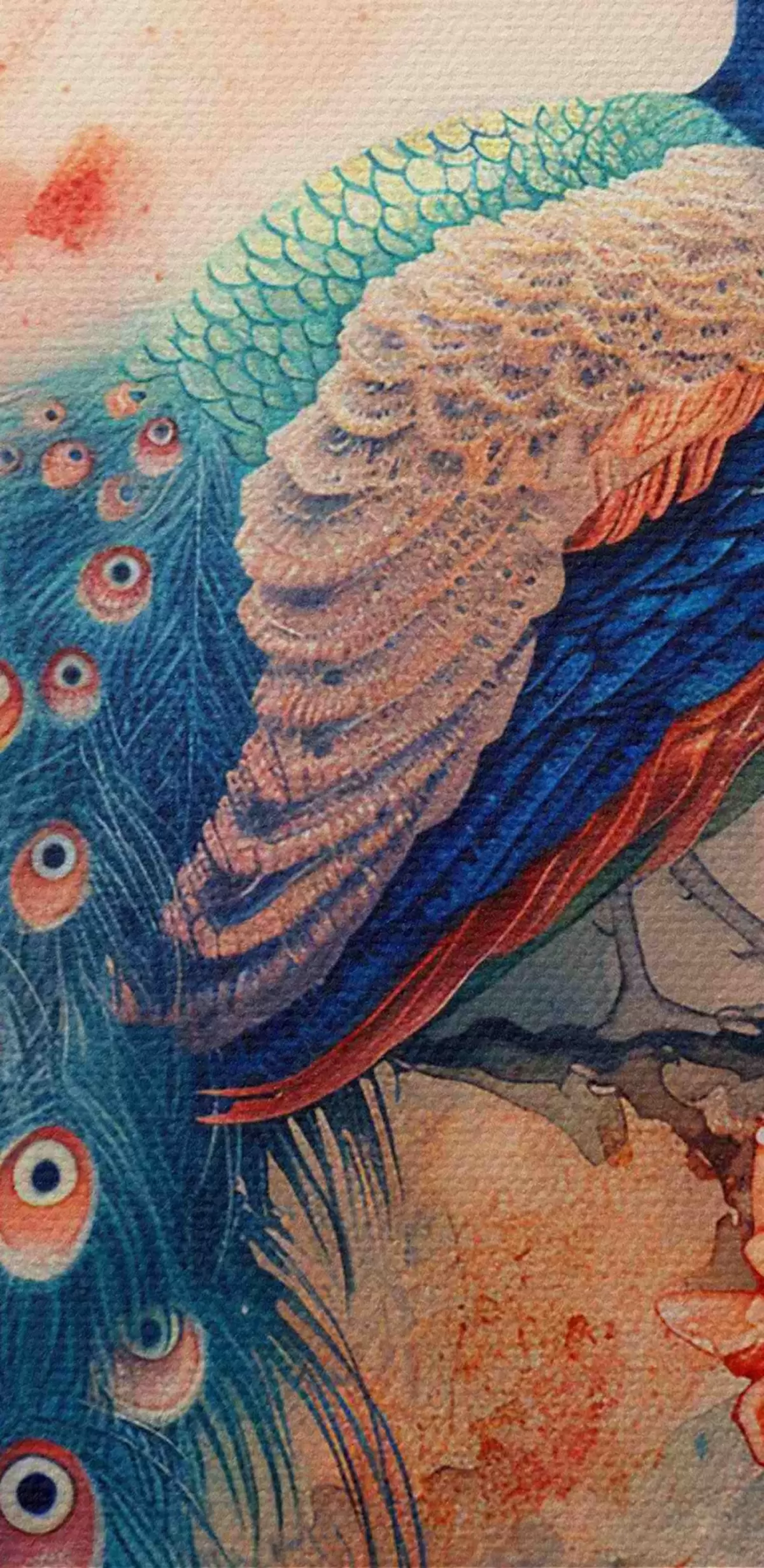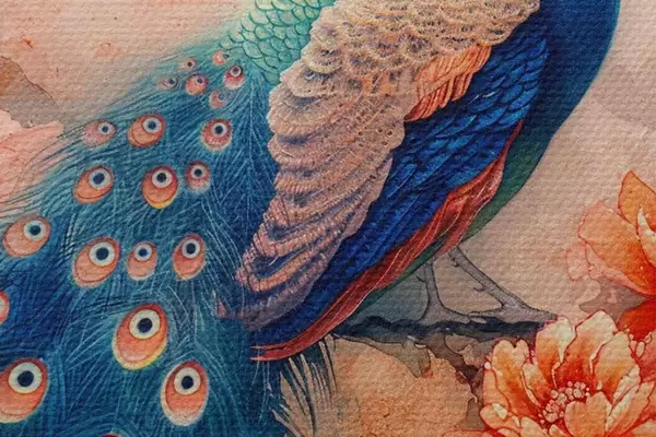 Pilt Maal, millel on kujutatud lilledega paabulind oksal Nr r38455