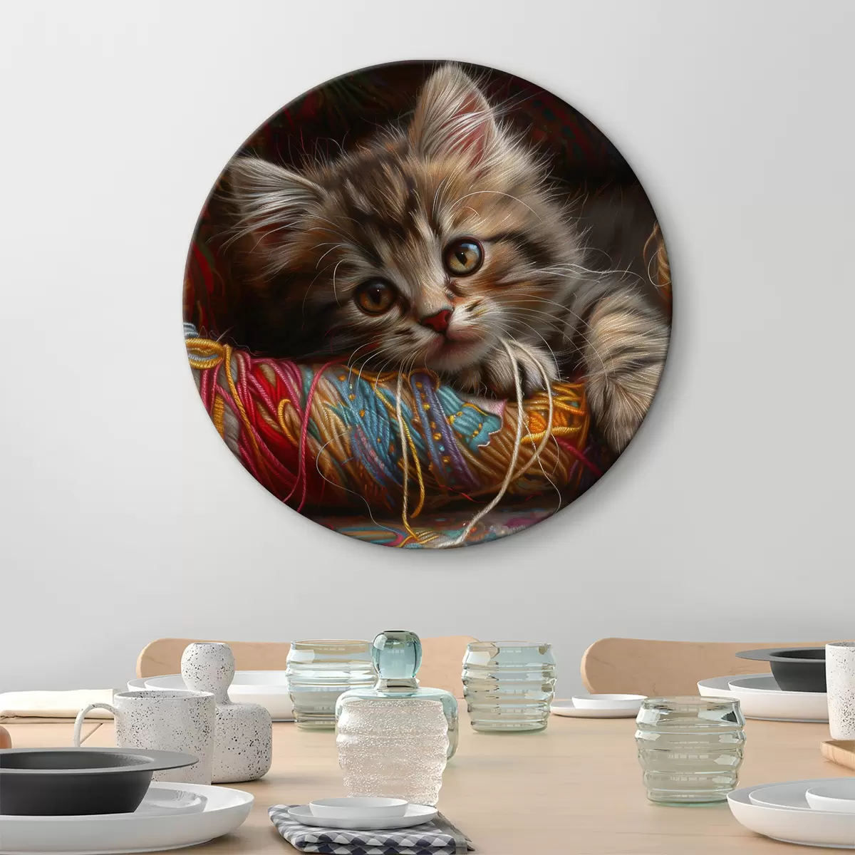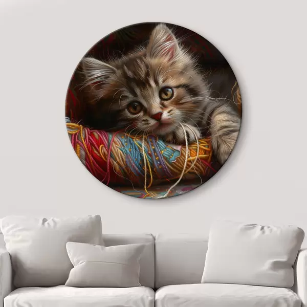 Pilt Kass, kes lamab villapalli peal Nr r38465