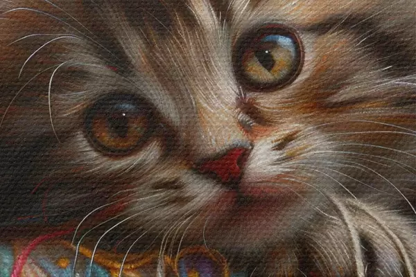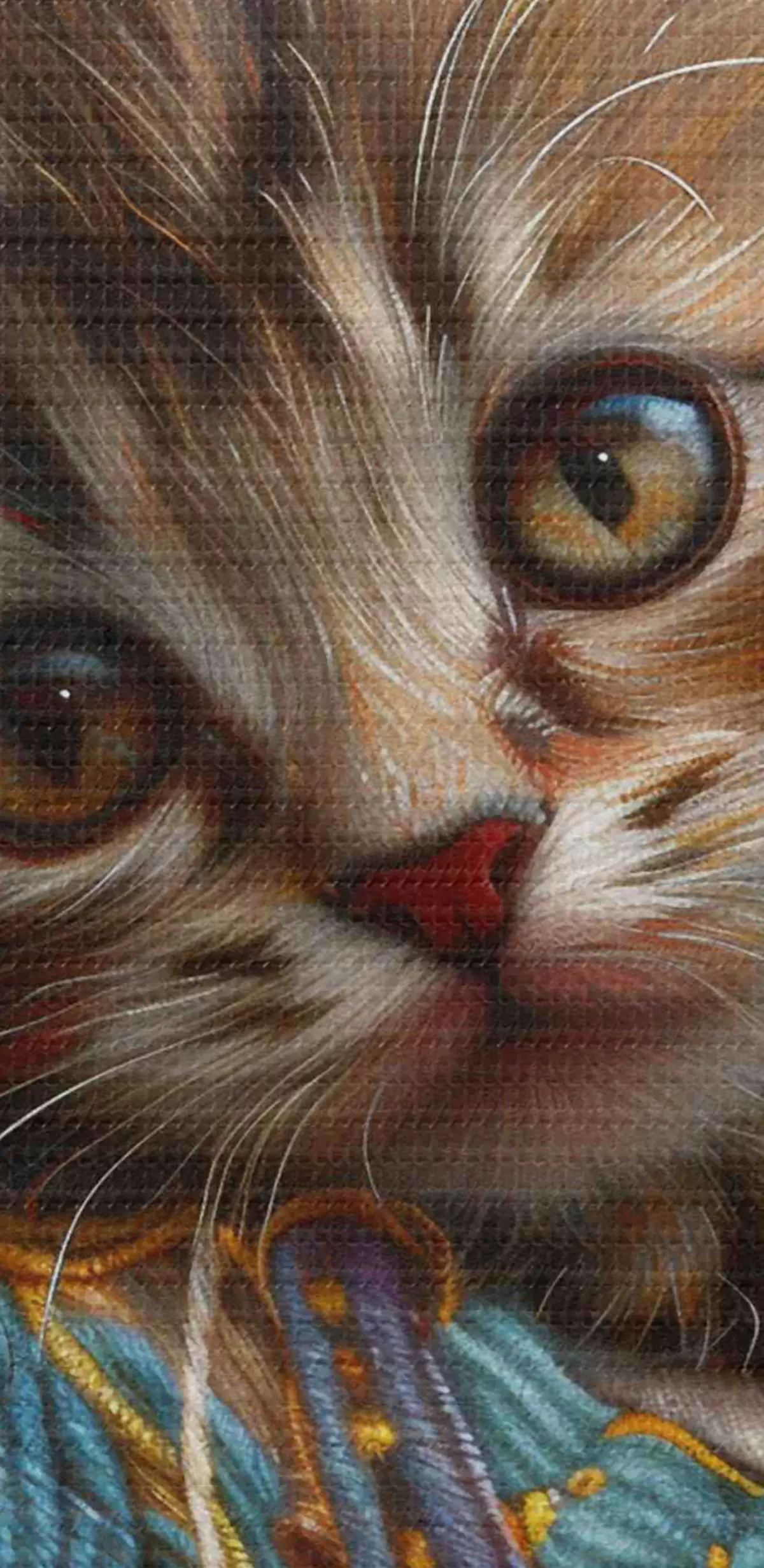 Selle lõuendi peenike niidipunus meenutab professionaalse kunstniku lõuendi pinda.