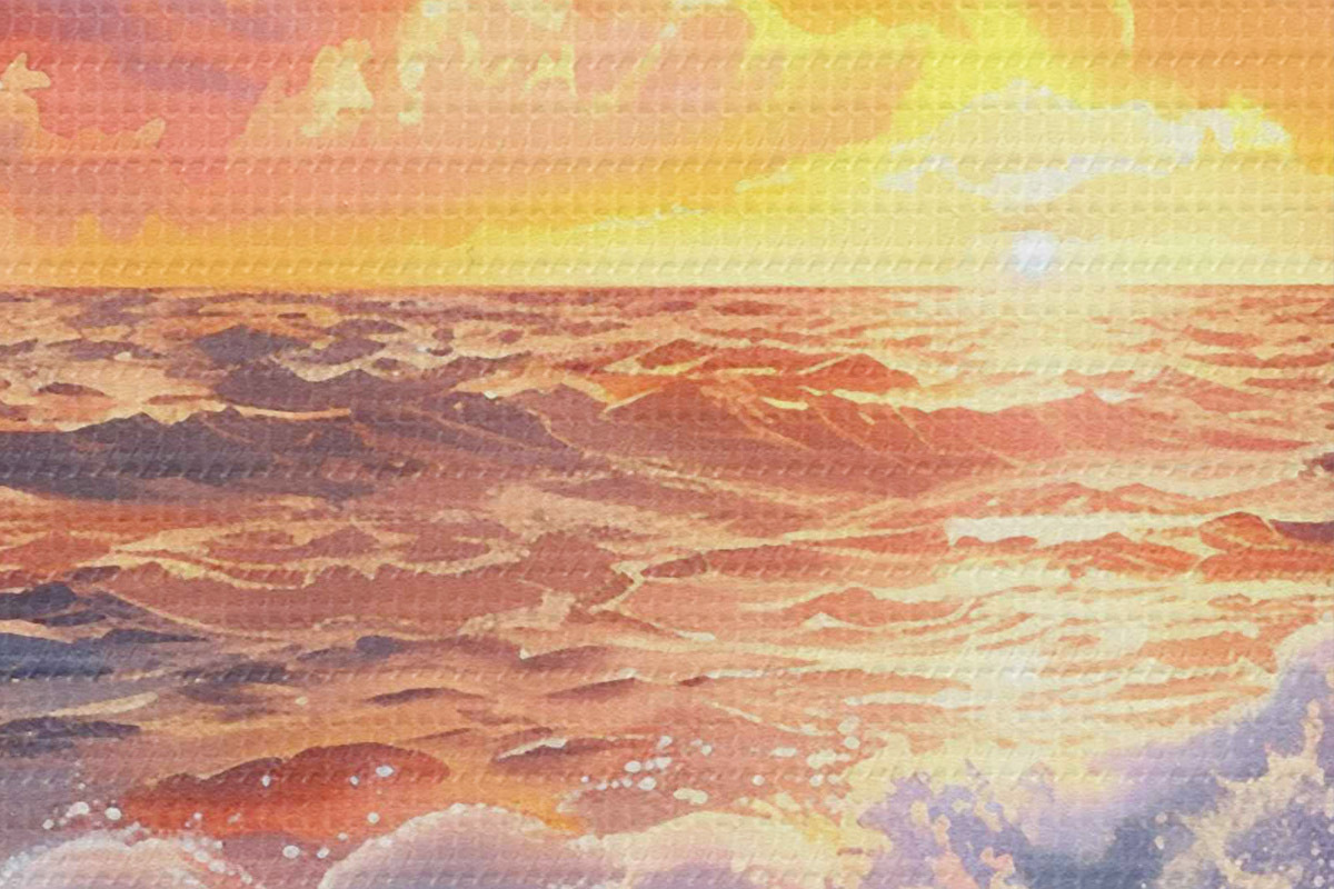 Selle lõuendi peenike niidipunus meenutab professionaalse kunstniku lõuendi pinda.