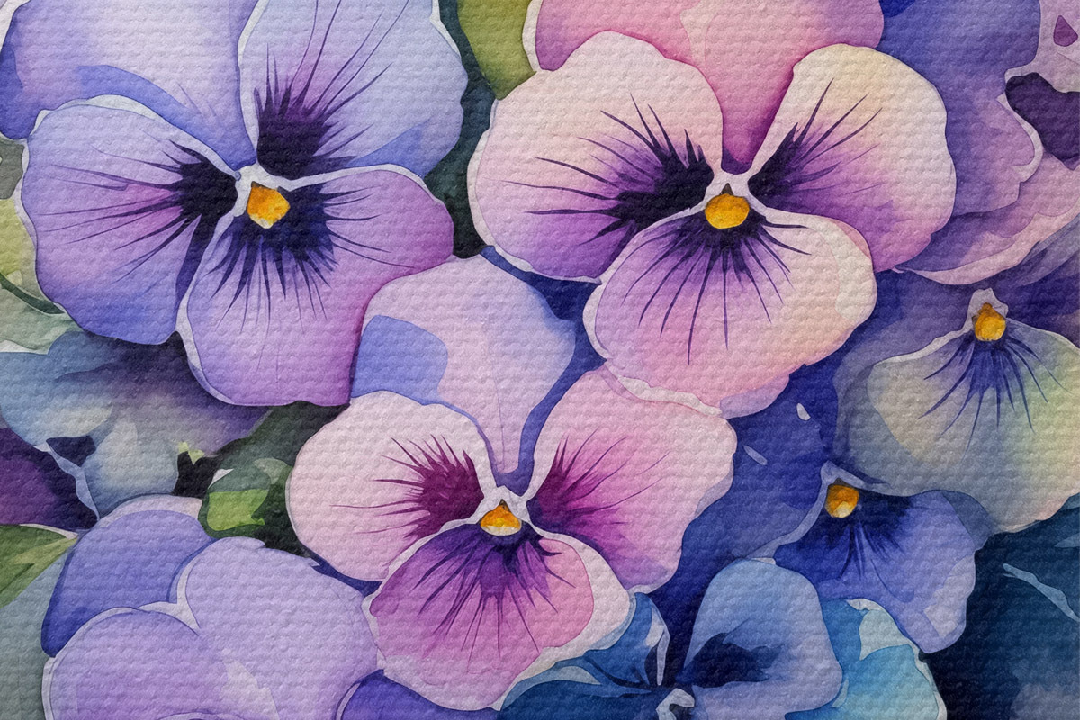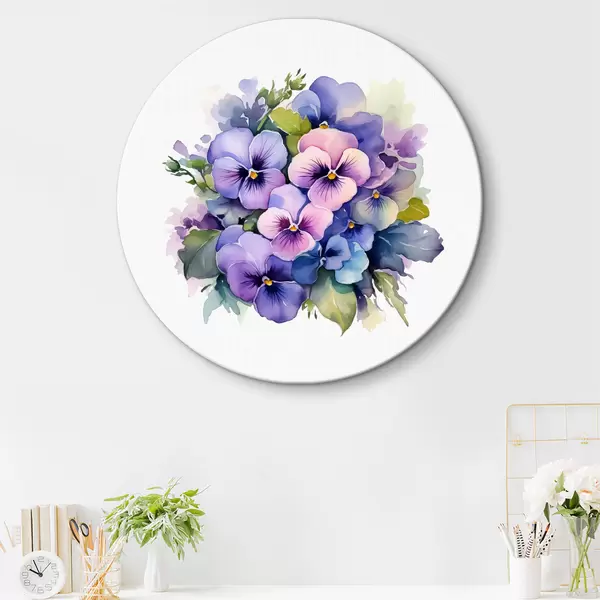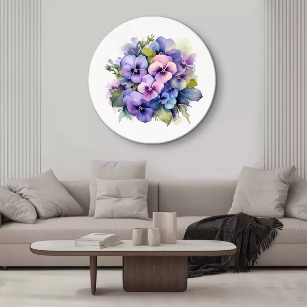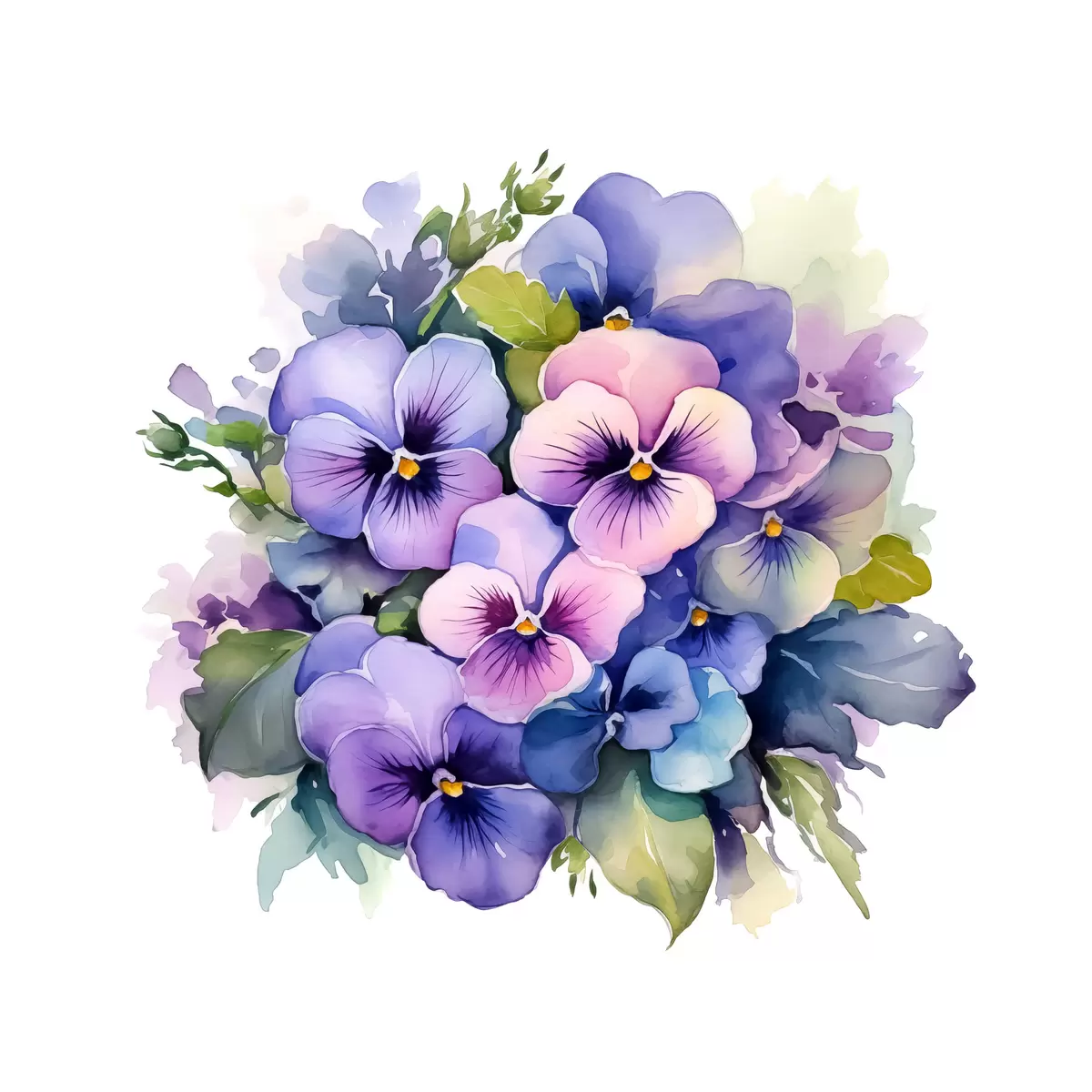 Pilt Violetne akvarellillustratsioon, kimp, lilled, sinine, lilla, roheline värv Nr r38486