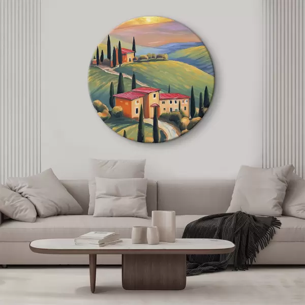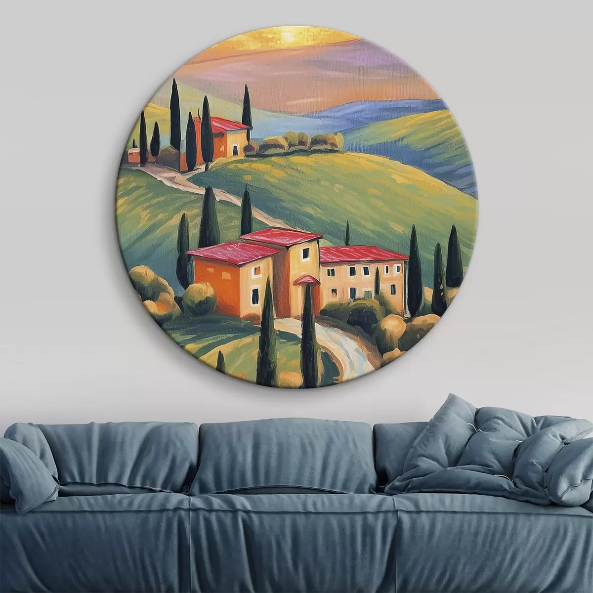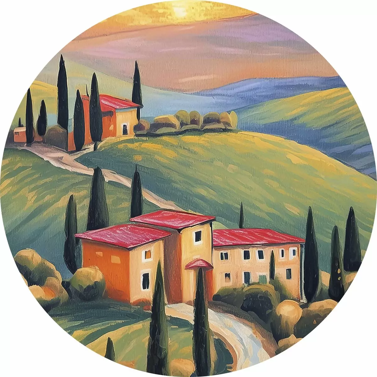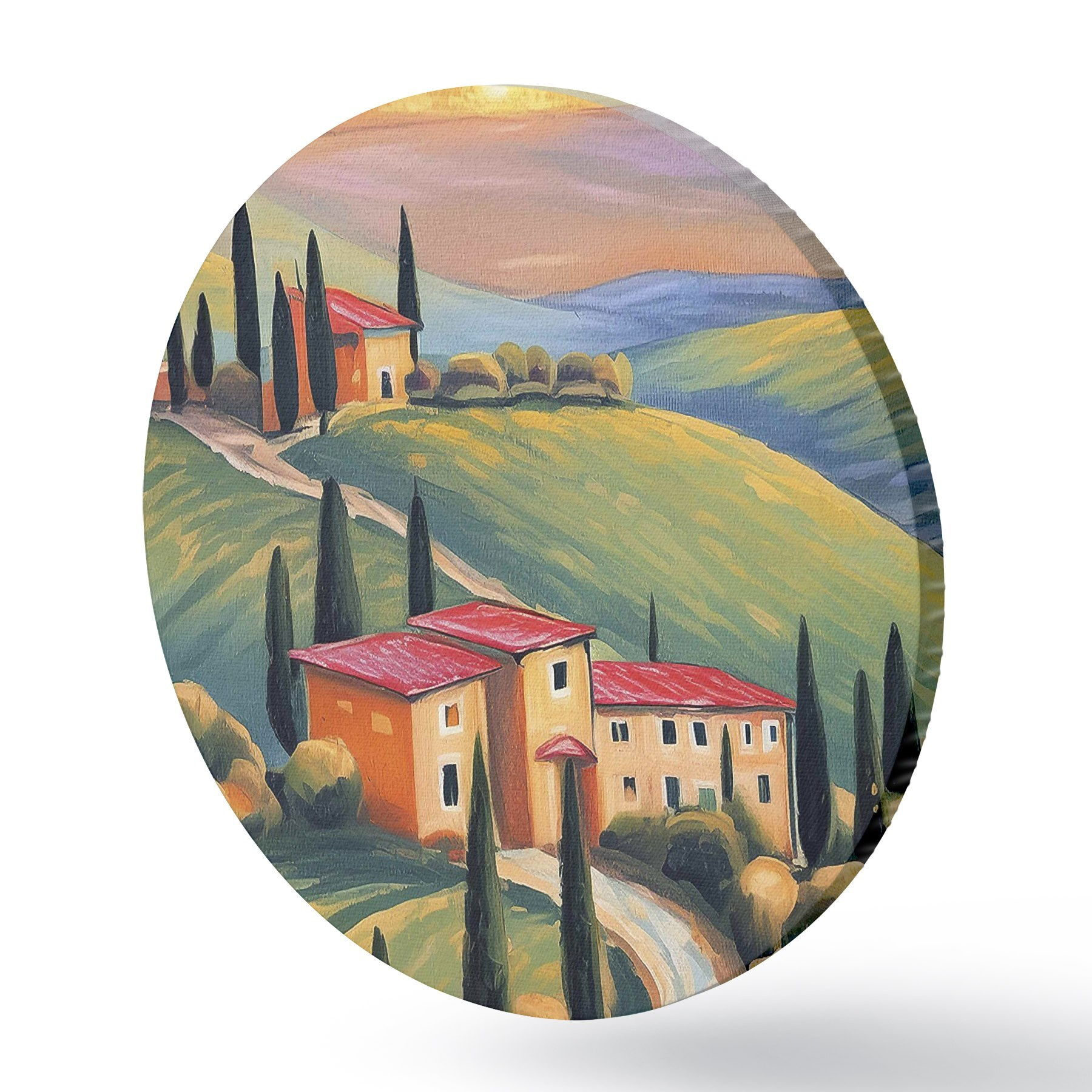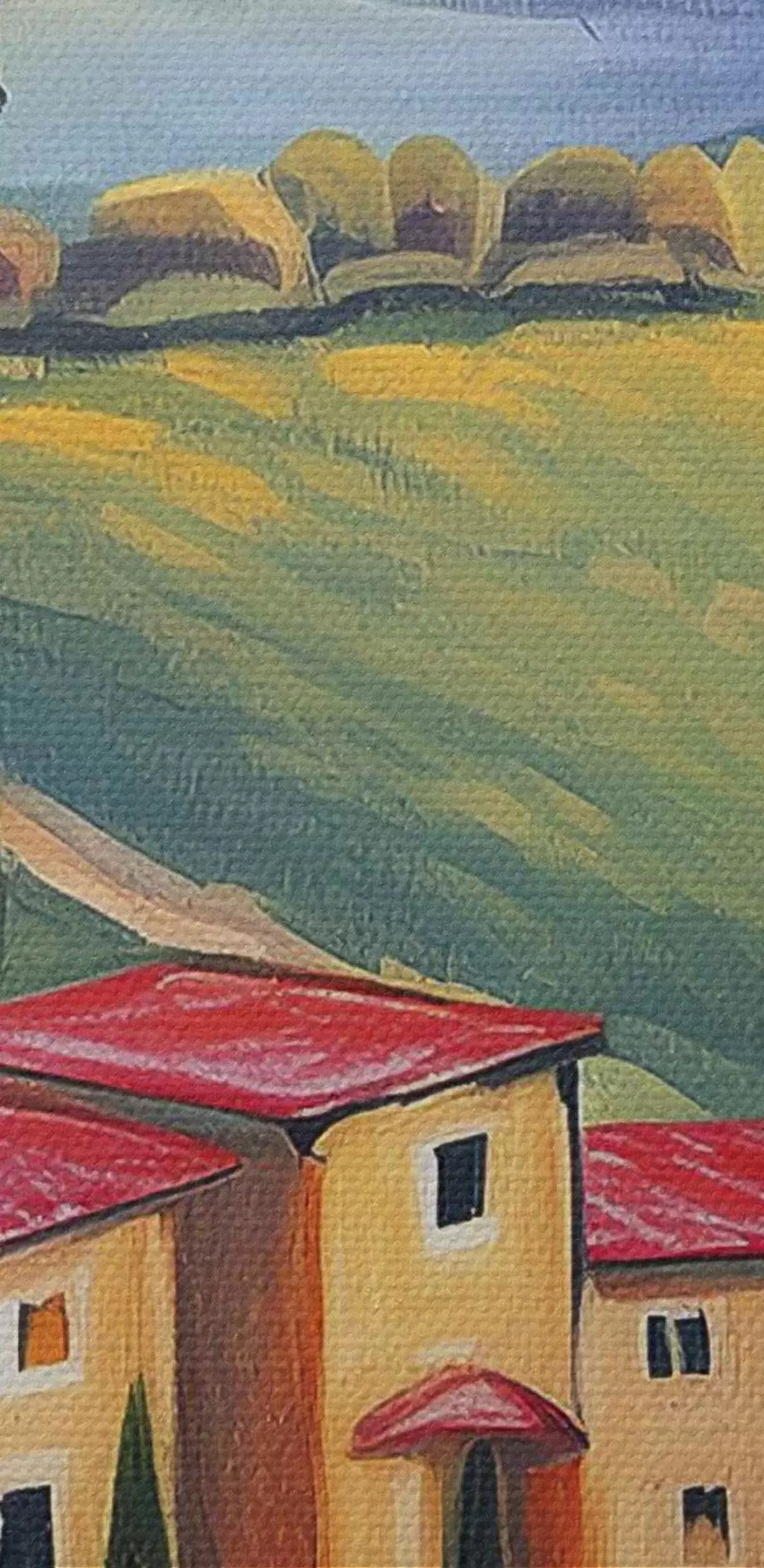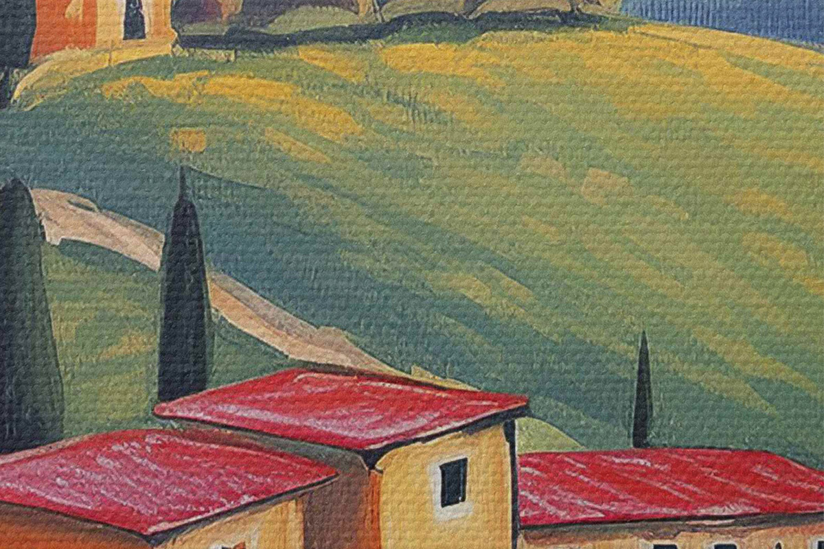 Pilt Toscana maastikud, Itaalia, akrüülkunst, vanad majad, põllud, suvi Nr r38488
