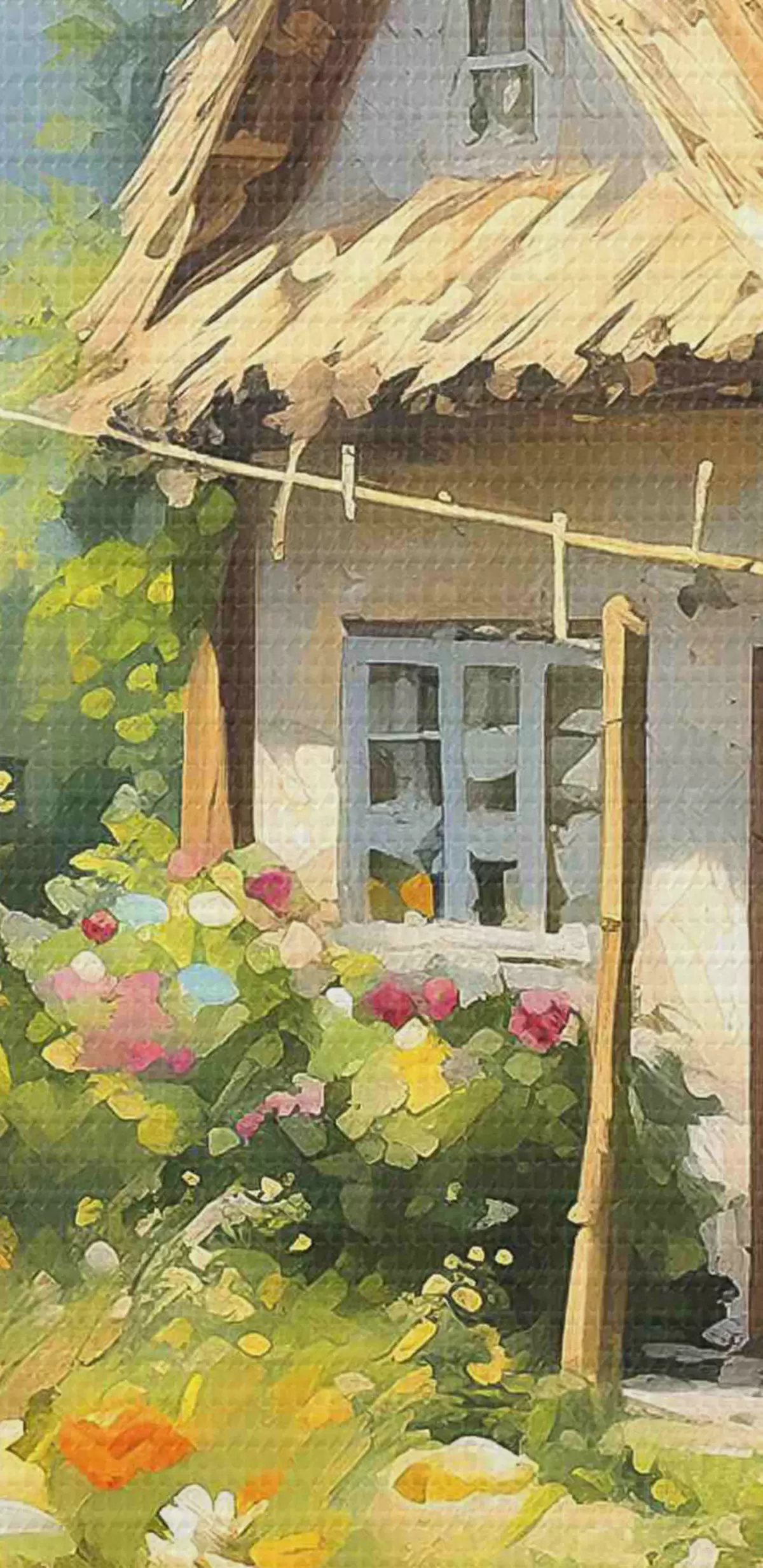 Selle lõuendi peenike niidipunus meenutab professionaalse kunstniku lõuendi pinda.
