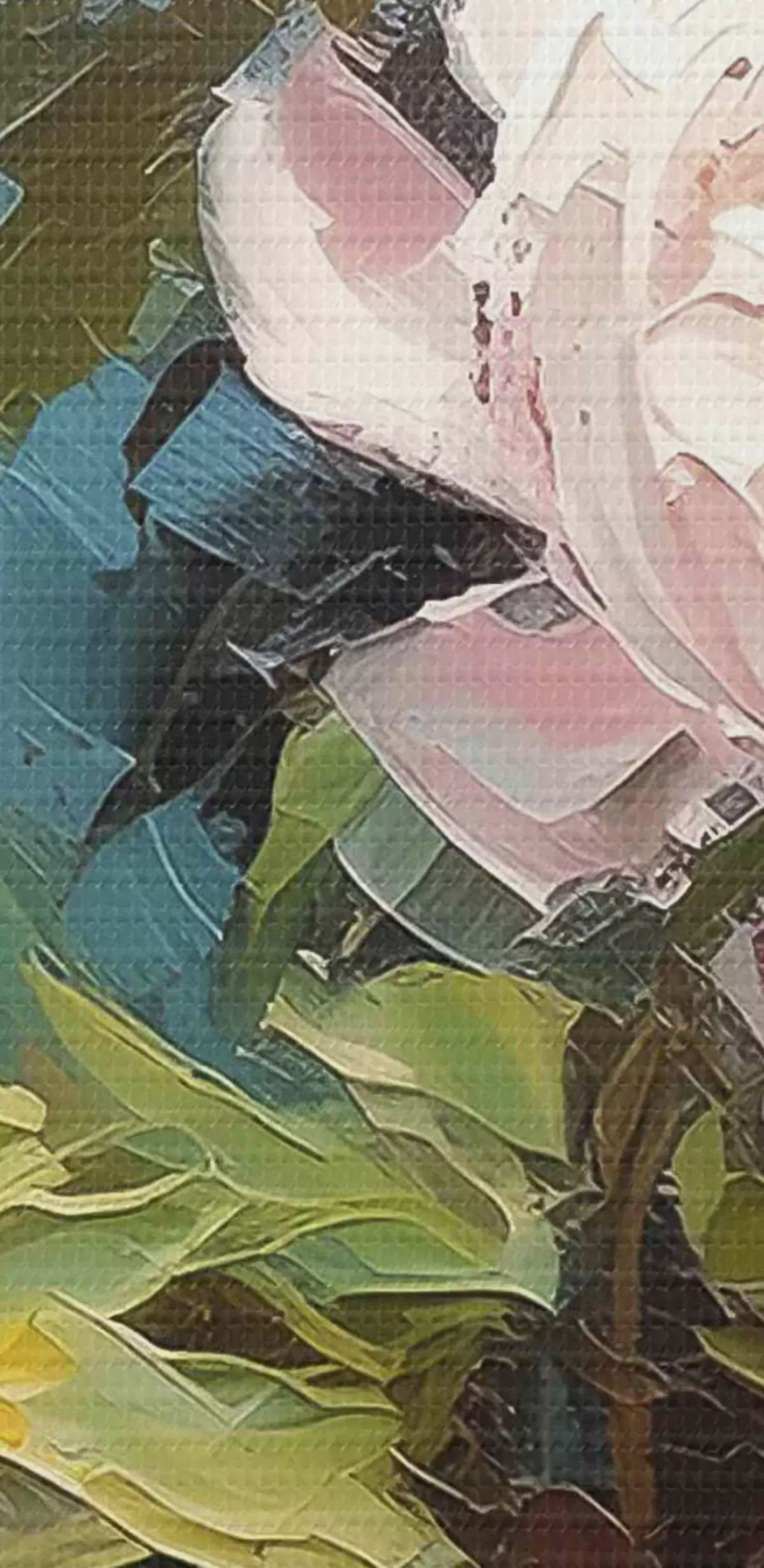 Selle lõuendi peenike niidipunus meenutab professionaalse kunstniku lõuendi pinda.