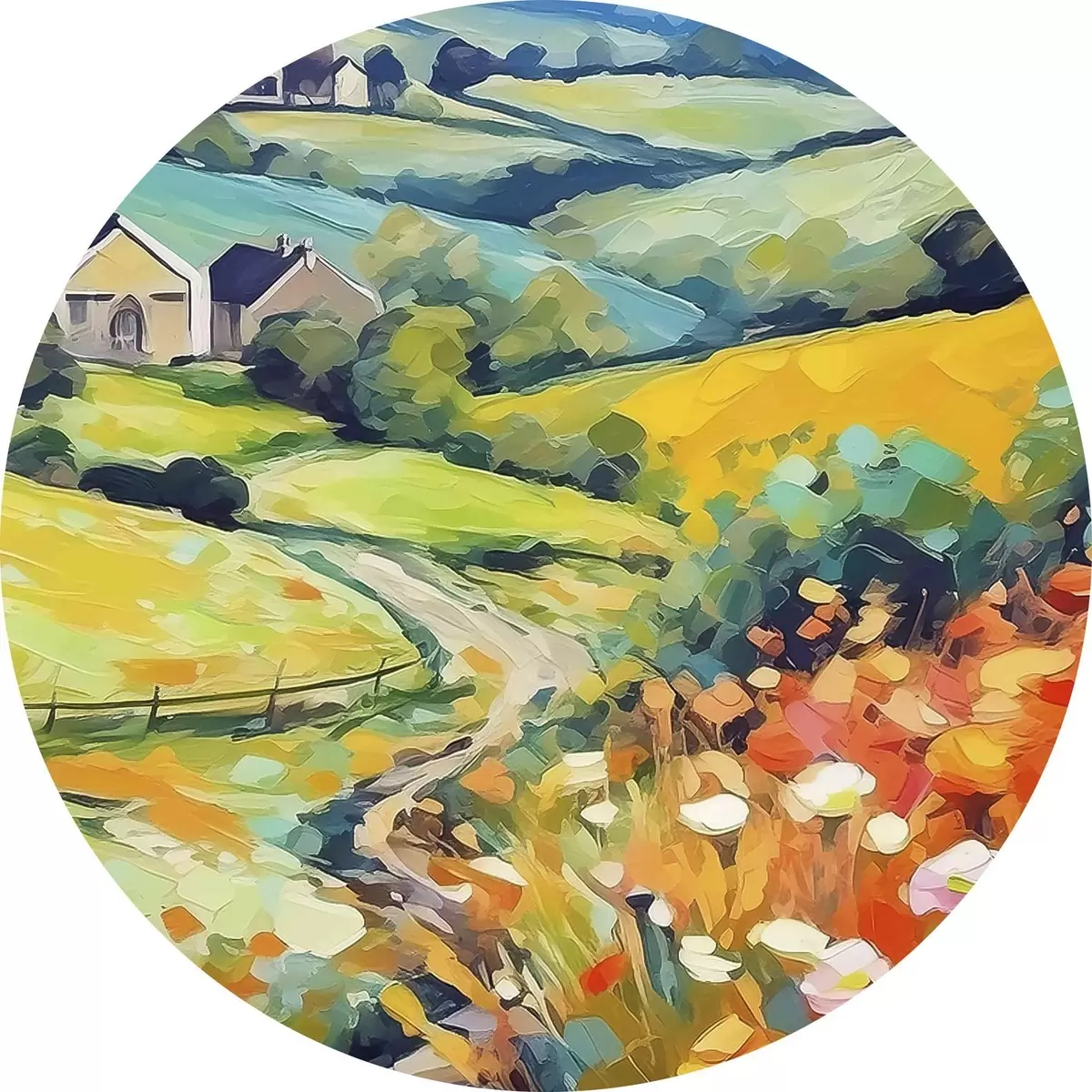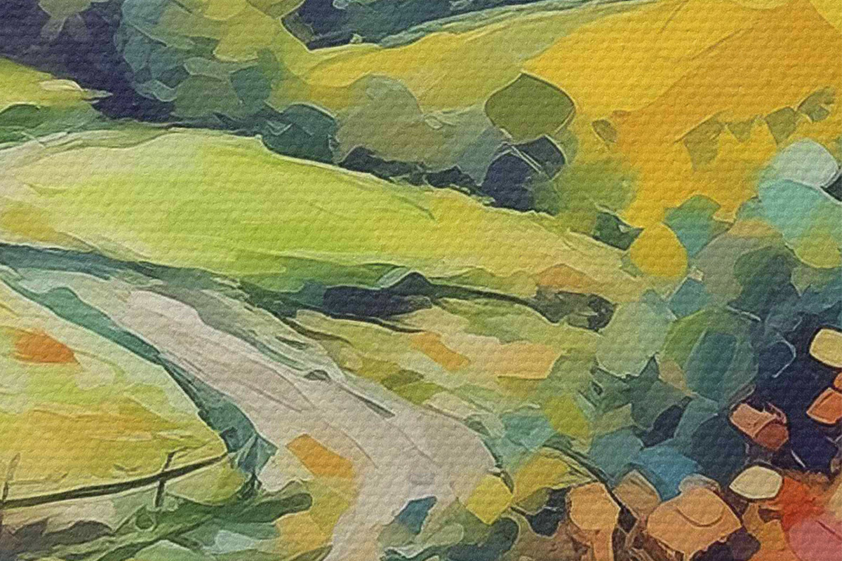 Pilt Maal, mis kujutab maastikku majade ja põldudega Nr r38501