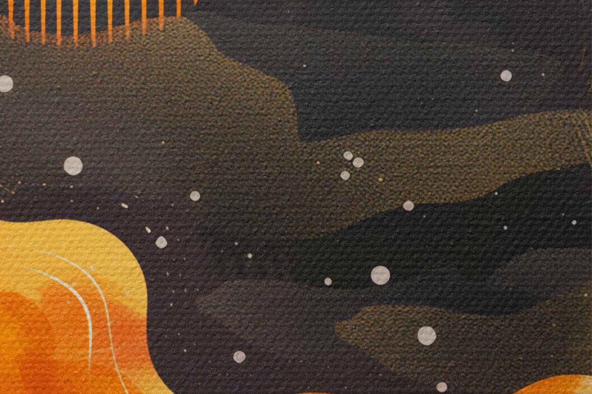 Selle lõuendi peenike niidipunus meenutab professionaalse kunstniku lõuendi pinda.