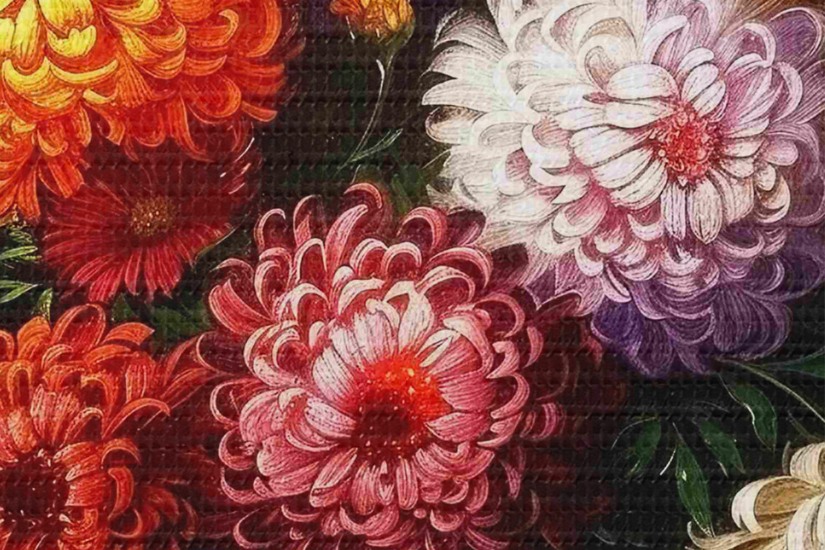 Selle lõuendi peenike niidipunus meenutab professionaalse kunstniku lõuendi pinda.