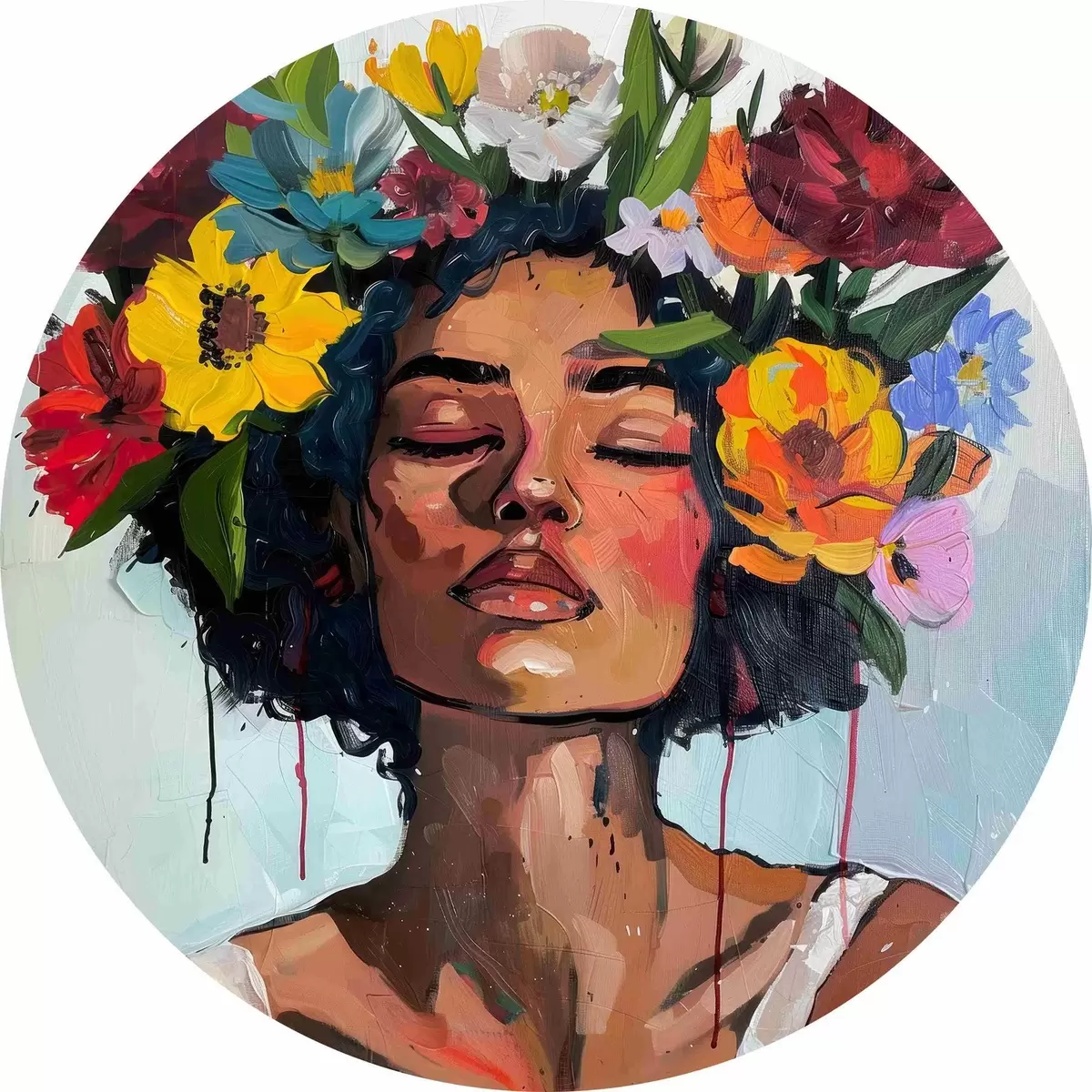 Pilt Maal, mis kujutab lilledega juustes naist Nr r38575