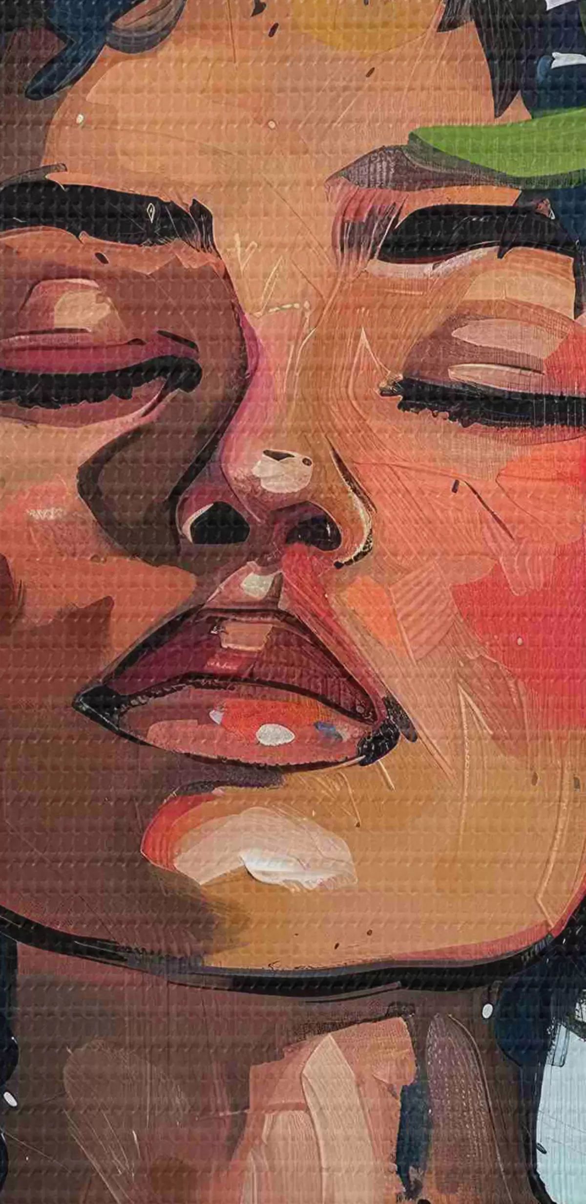 Selle lõuendi peenike niidipunus meenutab professionaalse kunstniku lõuendi pinda.