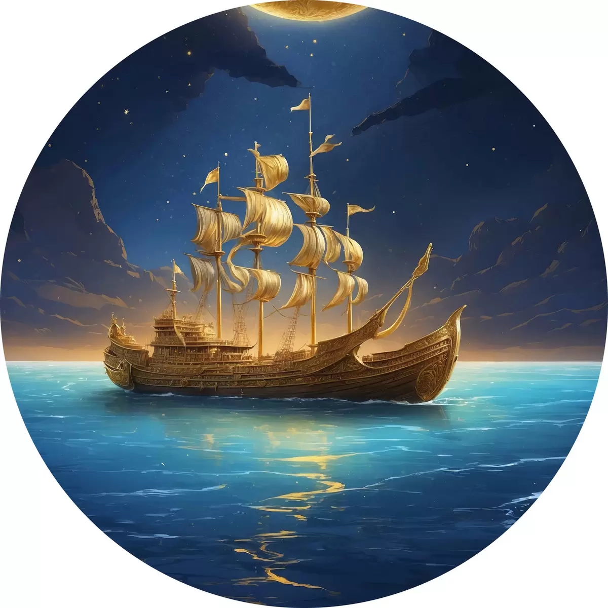 Pilt Paat vee peal, taustaks kuu Nr r38587