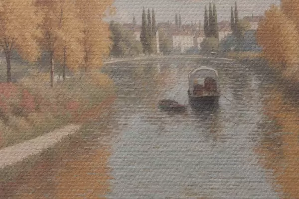 Pilt Maal jõest koos paatide ja inimestega Nr r38598