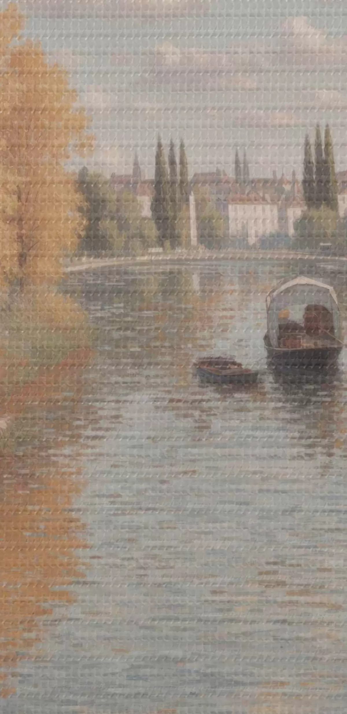 Selle lõuendi peenike niidipunus meenutab professionaalse kunstniku lõuendi pinda.