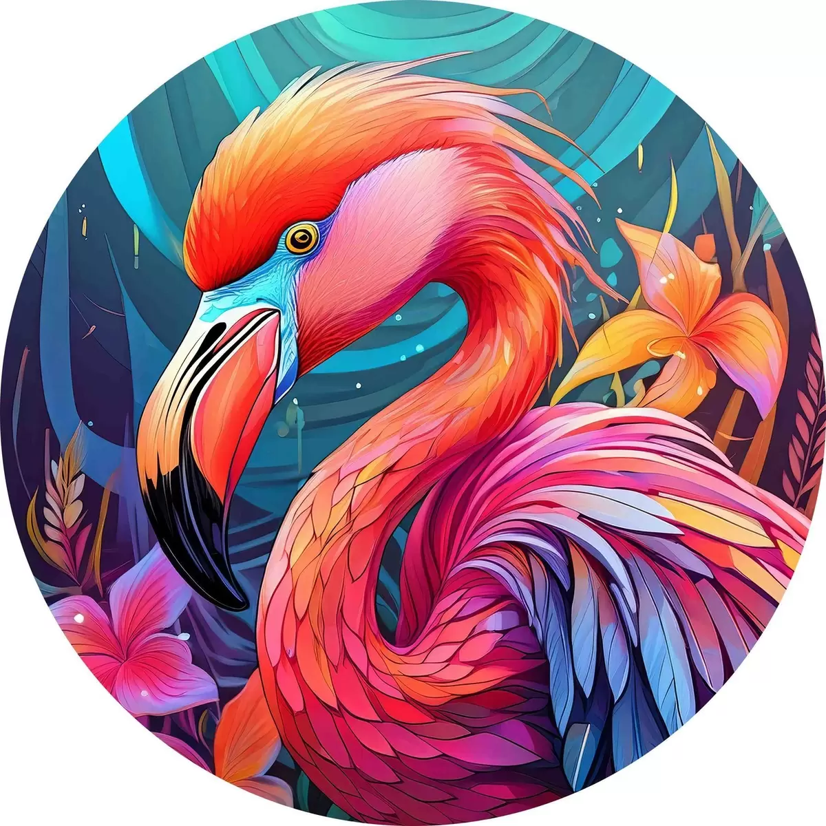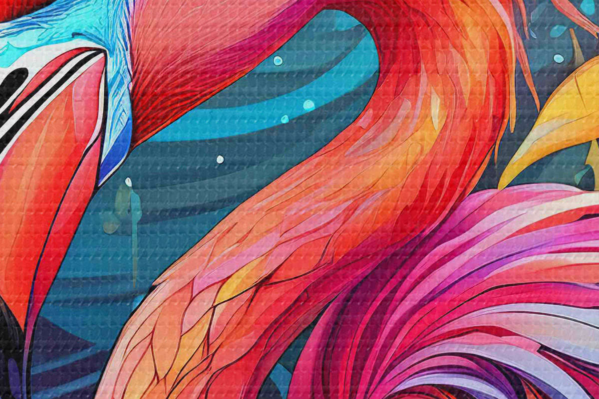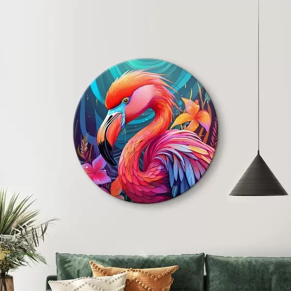 Pilt Värviline roosa flamingo koos lilledega Nr r38609