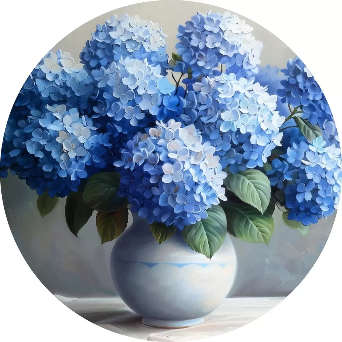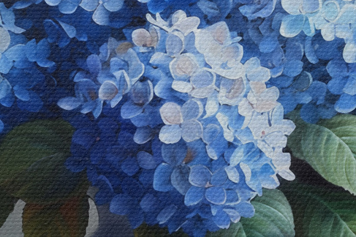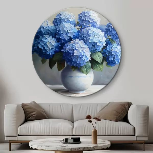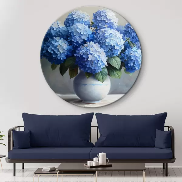 Pilt Siniste hortensiate kimp valges vaasis Nr r38696