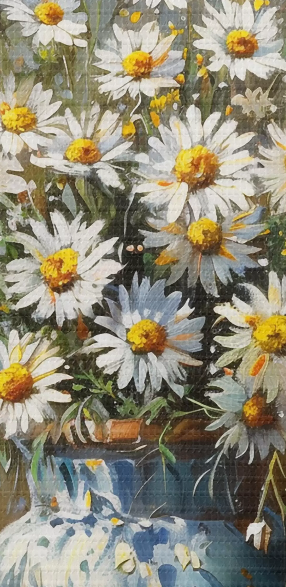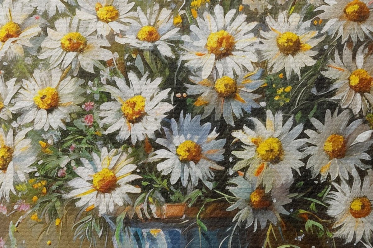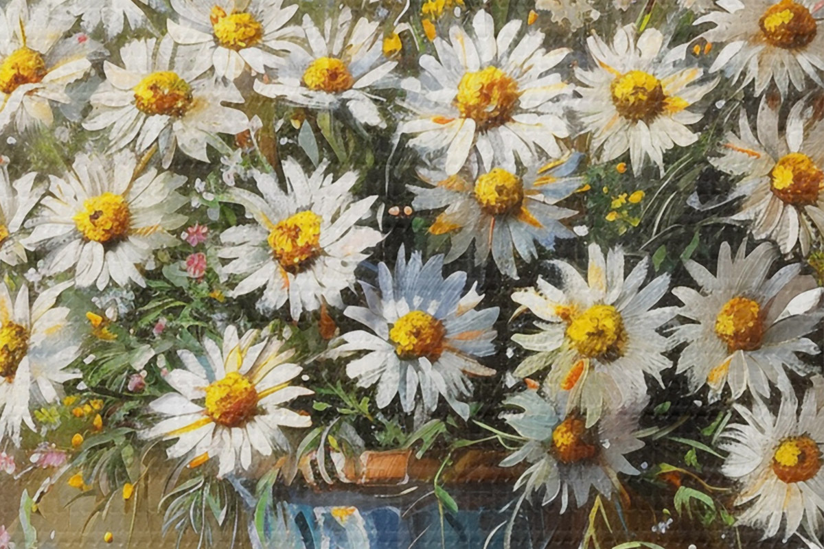 Selle lõuendi peenike niidipunus meenutab professionaalse kunstniku lõuendi pinda.