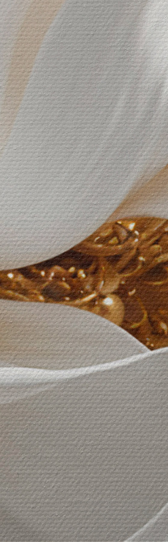 Selle lõuendi peenike niidipunus meenutab professionaalse kunstniku lõuendi pinda.