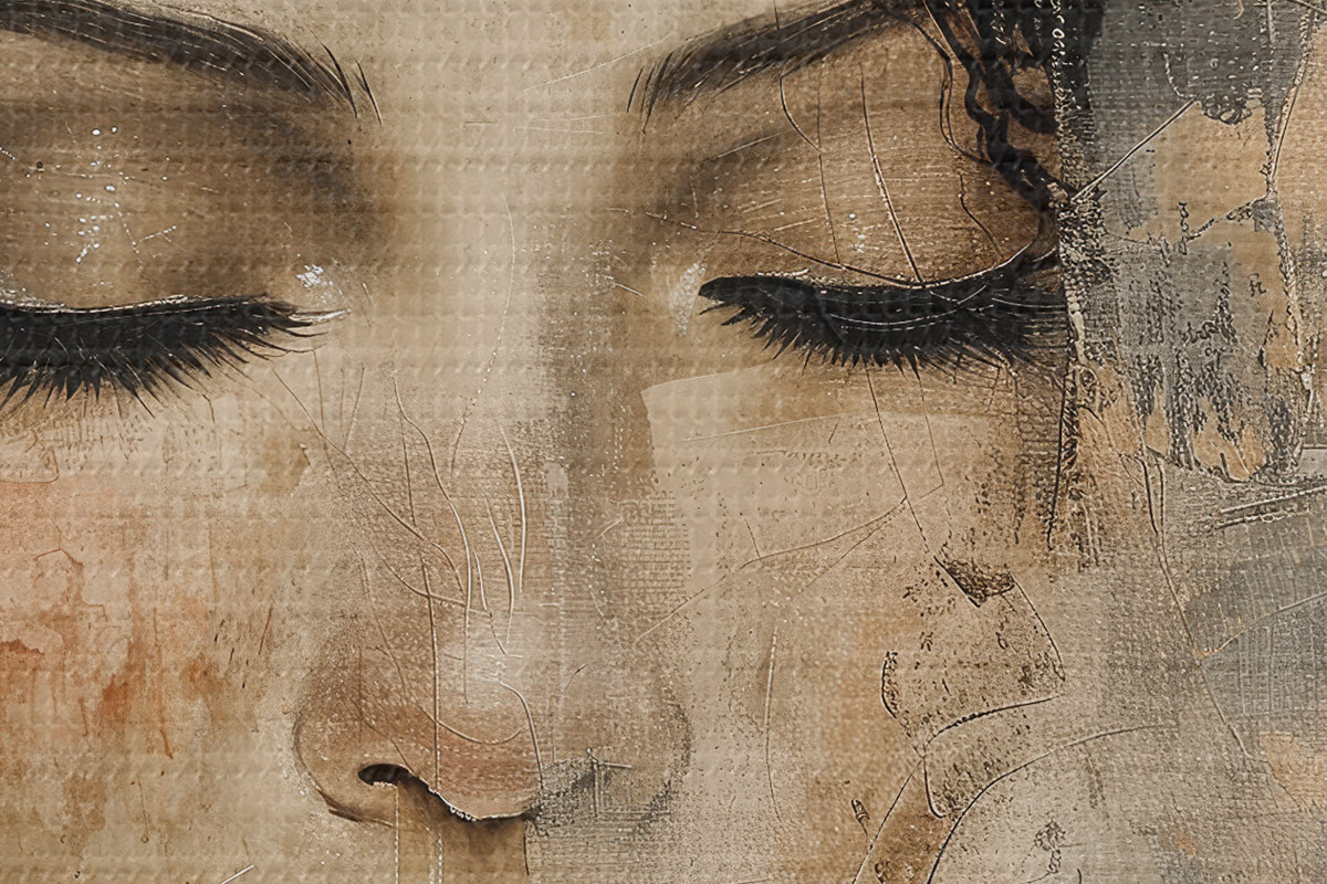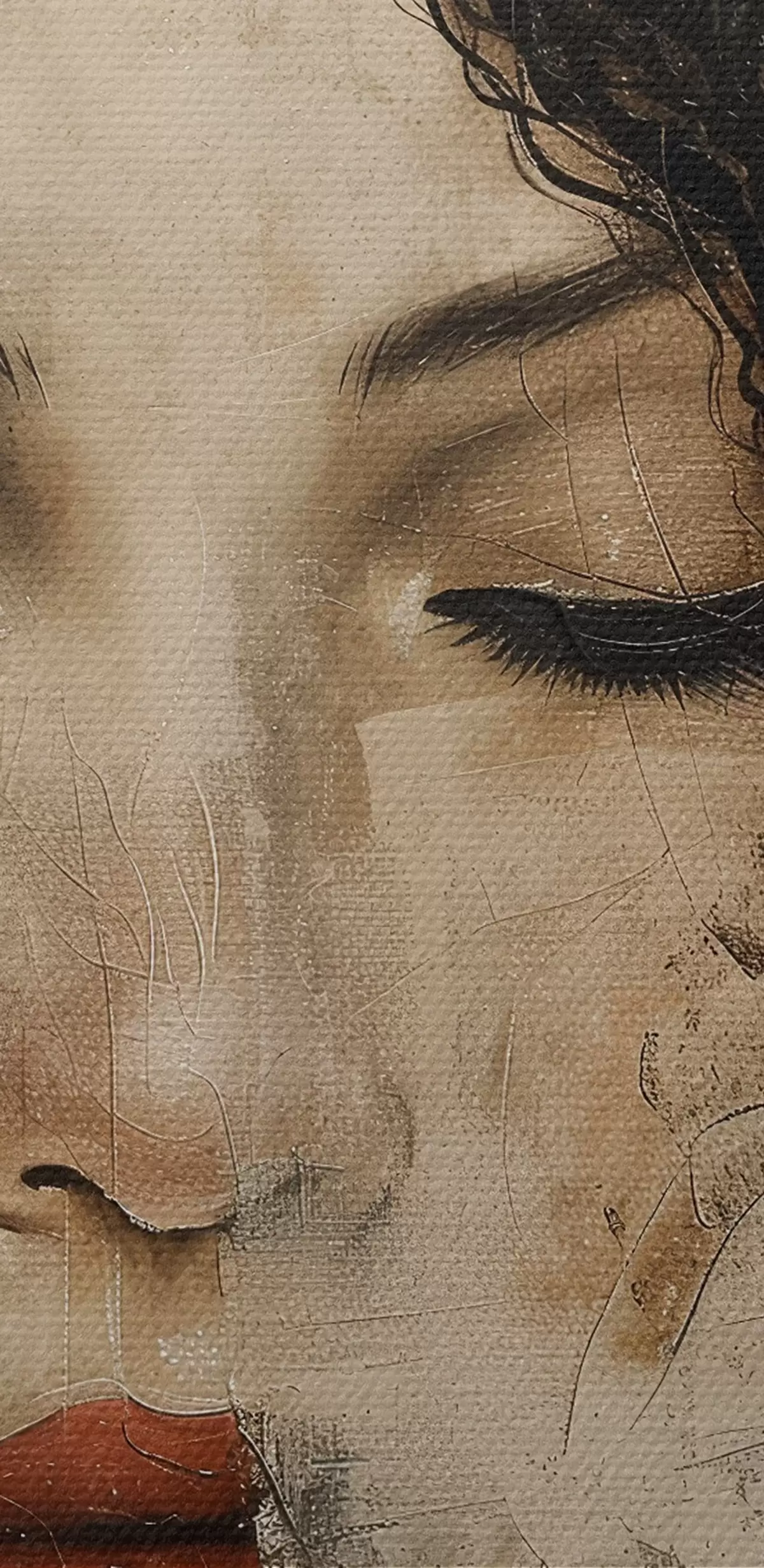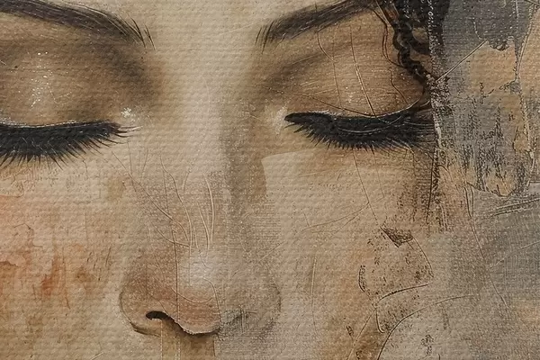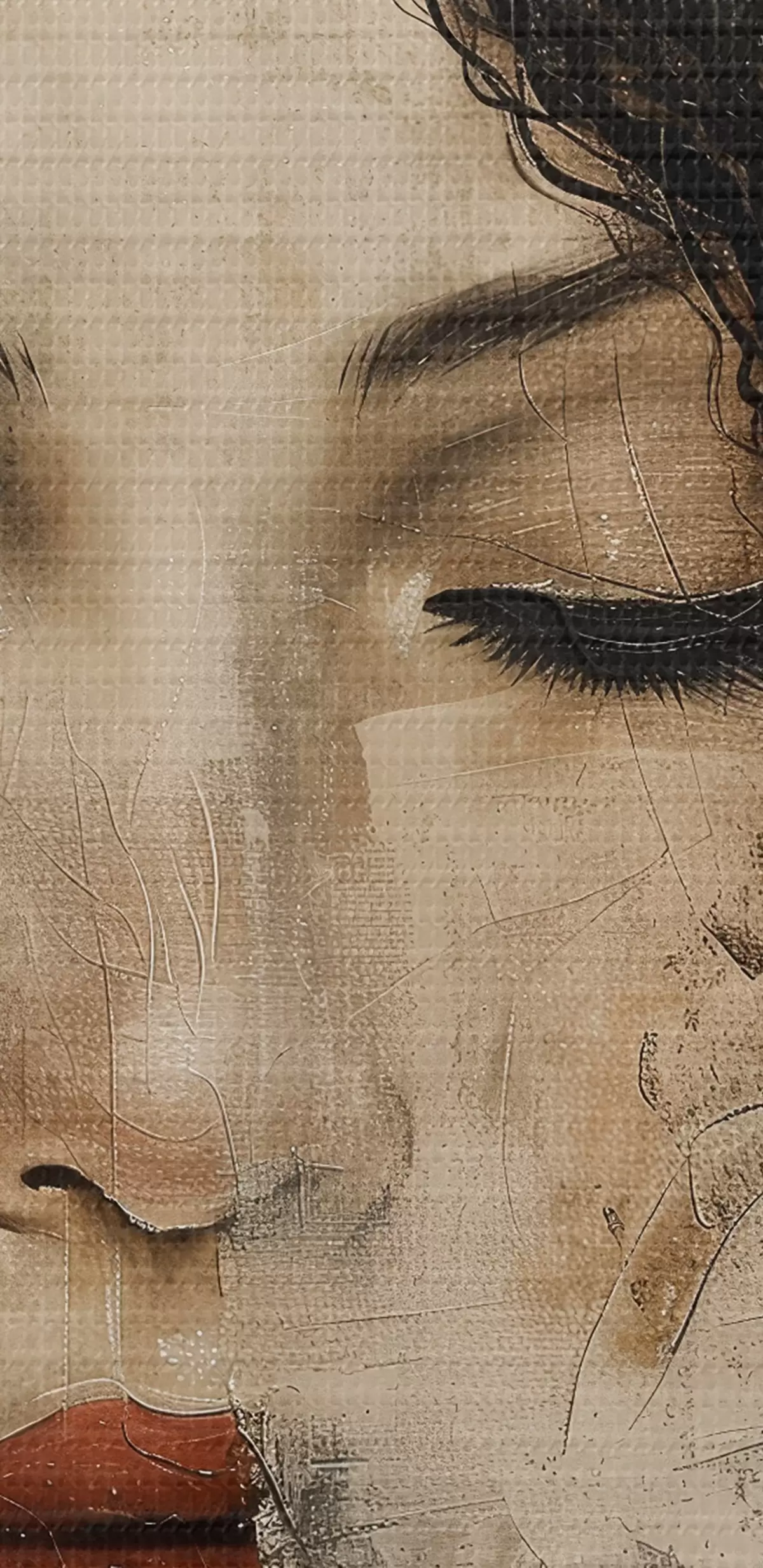 Selle lõuendi peenike niidipunus meenutab professionaalse kunstniku lõuendi pinda.