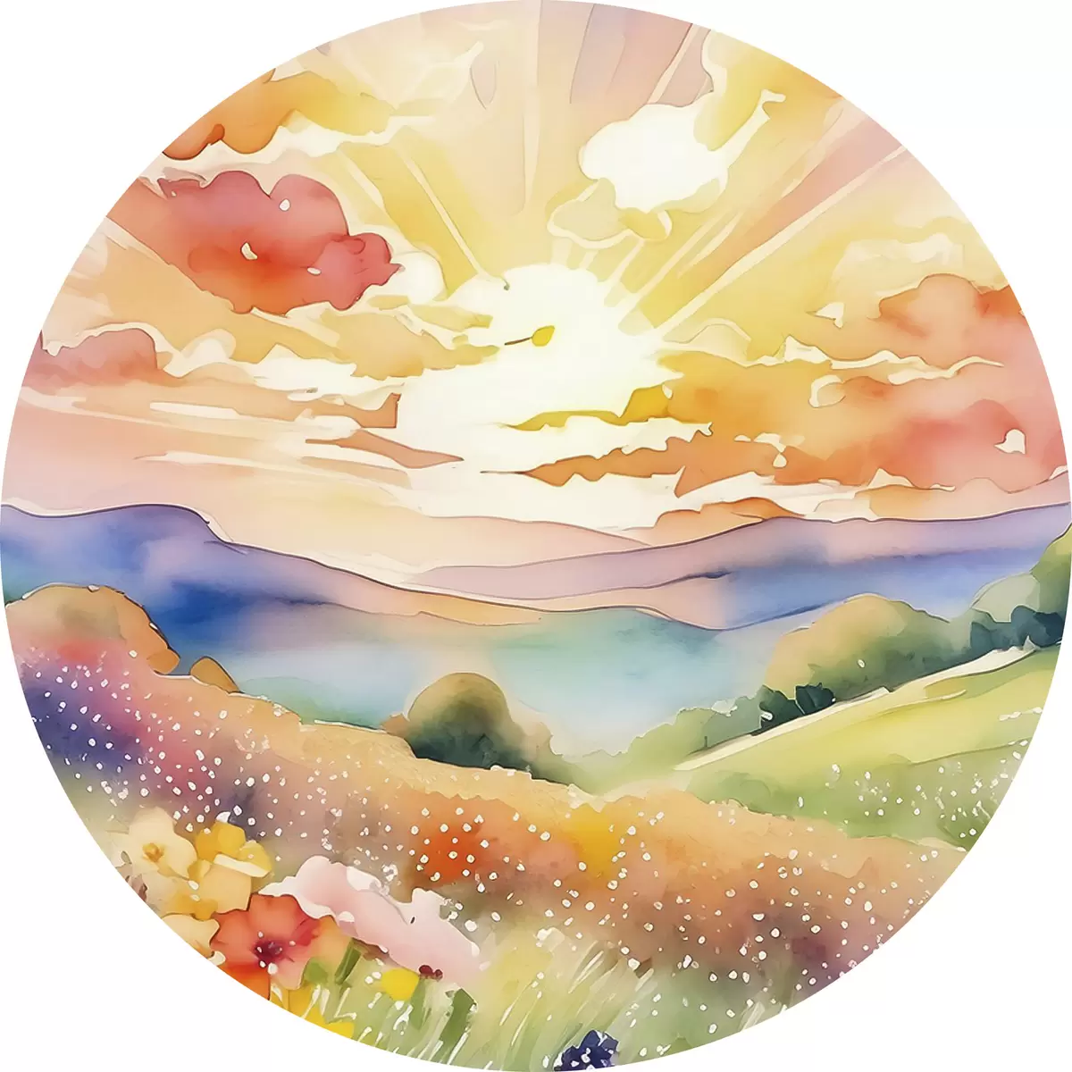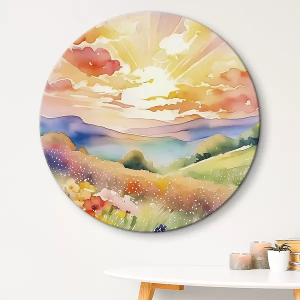 Pilt Päikeseloojang suveväljal, lilled, päike, värviline taevas, pilved, loodus Nr r38842