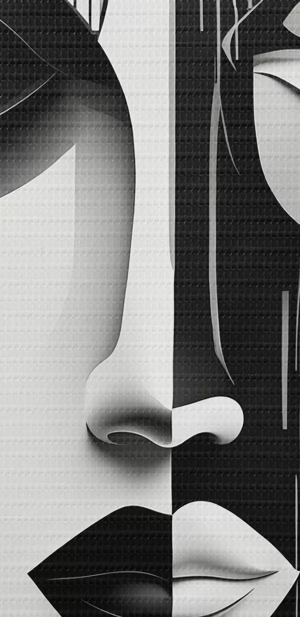 Selle lõuendi peenike niidipunus meenutab professionaalse kunstniku lõuendi pinda.